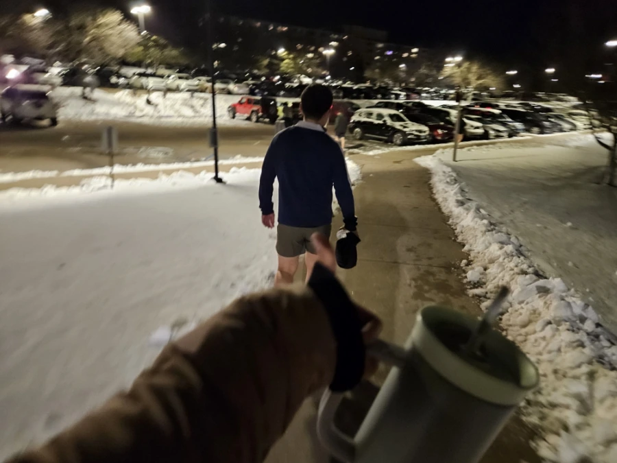 날이 너무 추워서 가는 발걸음은 영 무거웠지만 운동을 하고 나오는 길은 언제나 세상 상쾌하다. 몸에서 열이 나니 -15도도 낮처럼 춥게 느껴지지 않는다. 위의 세 번째 사진은 -15도 밤에 반바지와 얇은 저지하나 입고 객기를 부리는 남편이다. 그러고 둘 다 감기에 걸려 앓아누웠다는 엔딩이다.