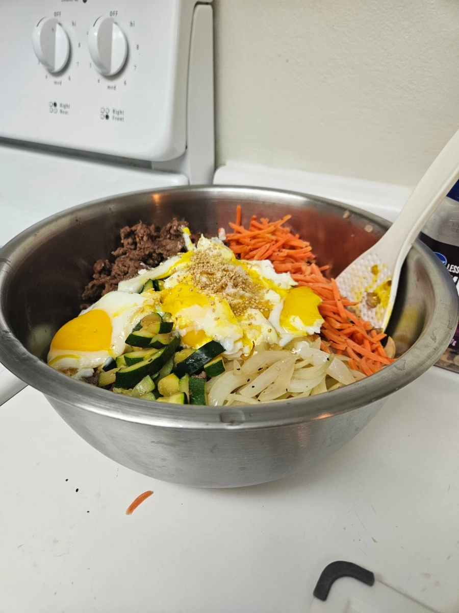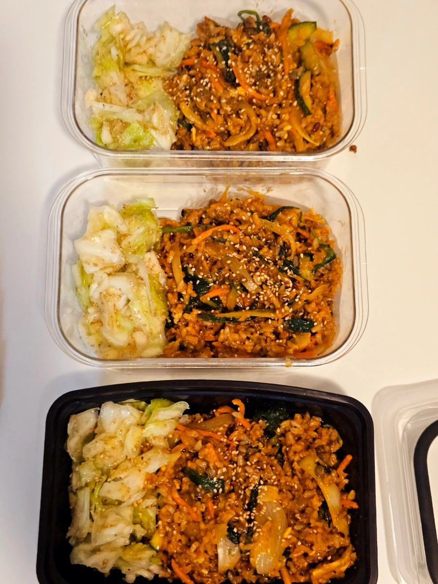 금주의 밀프렙은 전주비빔밥이다. 양푼에 한가득 비빔밥 재료를 털어 넣고 비벼서 한 주 내내 점심으로 가지고 다니며 잘 먹었다. 요즘 꽂힌 들기름 양배추 무침과 함께다. 점심에 레인지에 넣고 몇 분 돌리고 있노라면 고소-한 참기름 냄새와 들기름 냄새가 한 번에 확 올라와서 꽤 괜찮은 조합이었다. 비빔밥은 매콤해서 잘 질리지도 않고 일주일 점심 도시락으로 퍽 괜찮은 메뉴라고 생각했다.