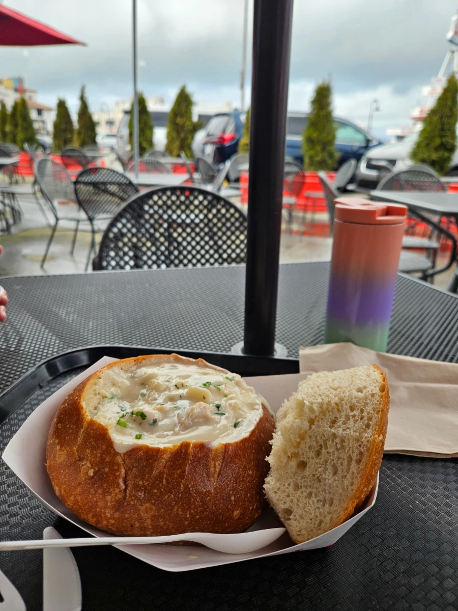 롬바드 스트리트를 구경하고 넘어와 조금 걸으니 피어 39가 나왔다. 잠시 짧은 소나기가 쏴아 내려 조금 추웠는데, 사워 도우 빵에 든 뜨끈뜨끈-한 클램 차우더를 한 그릇 먹으니 몸이 사르르 녹아내리며 속이 확 풀렸다. 클램 차우더에 조개를 아낌없이 넣어주어 시원한 바다향이 입안에 사-악 퍼진다. 한 입에 조개를 두 개 올려 넣으면 입안에 바다 맛 산지 직송 배달이다. 음식 자체도 워낙 맛있는데, 비온 직후에 쌀쌀할 때 야외에서 먹으니 수프의 매력이 두 배가 된 것 같다. 소나기는 클램 차우더를 위한 빌드업이었을 뿐이다.