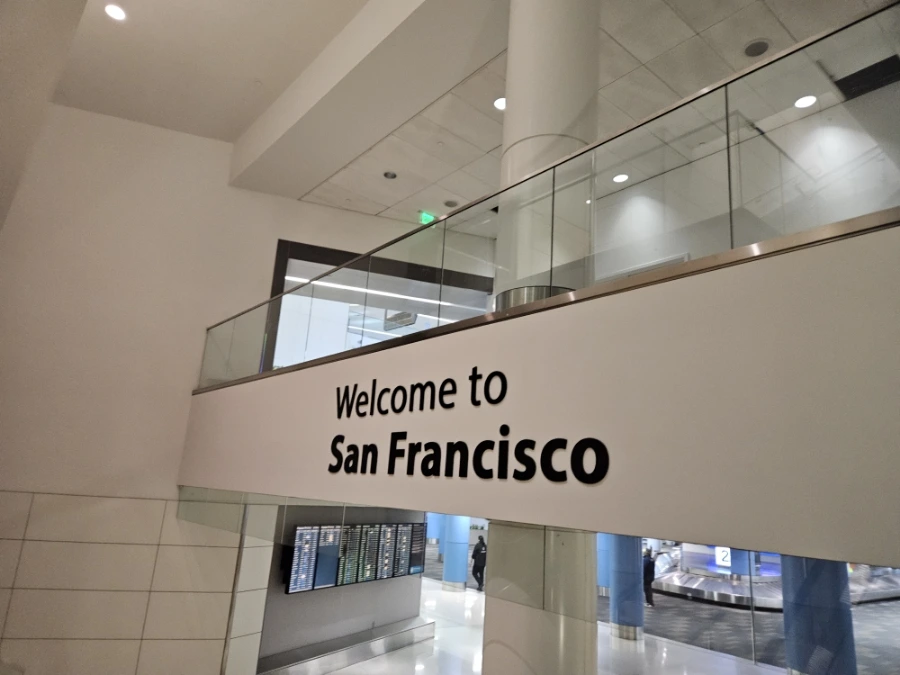 사촌 언니들이 살고 있기도 하고, 서부에서 가장 유명한 도시 중 하나인지라, 한 번쯤은 꼭 가보고 싶은 도시였다. 중부의 길고 추웠던 겨울이 지겨워 조금은 따뜻한 곳으로 가고 싶던 차에 딱 니즈가 맞아떨어져 방문하게 되었다. 공항 입구 환영 문구부터 어딘가 깔끔하고 예뻤다.