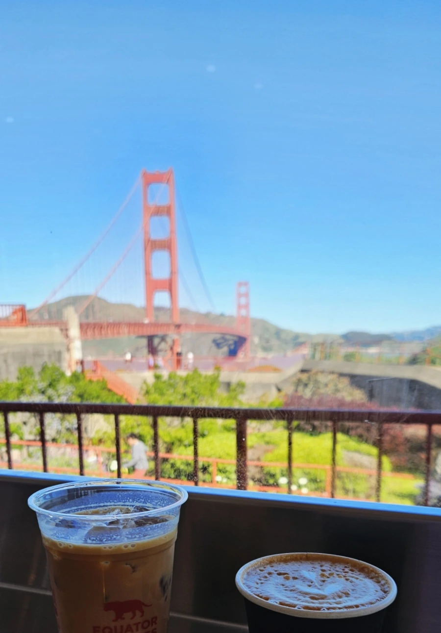 모쪼록 경치가 끝내주게 좋은 커피숍에 들러 커피 한 잔 마시며 한동안 금문교 주변의 풍경을 눈에 꼭꼭 담았다. 실제로 가보면 사진보다도 더 탁-트이고 시원시원한 느낌이 든다. 아름다운 풍경과 딱 적당한 날씨, 맛있는 커피와 평일 오전의 여유가 기억에 남는다. 케이블카 탑승에 이어, 샌프란시스코에서 가장 좋았던 경험 TOP3 중 하나로 꼽히는 순간이다.