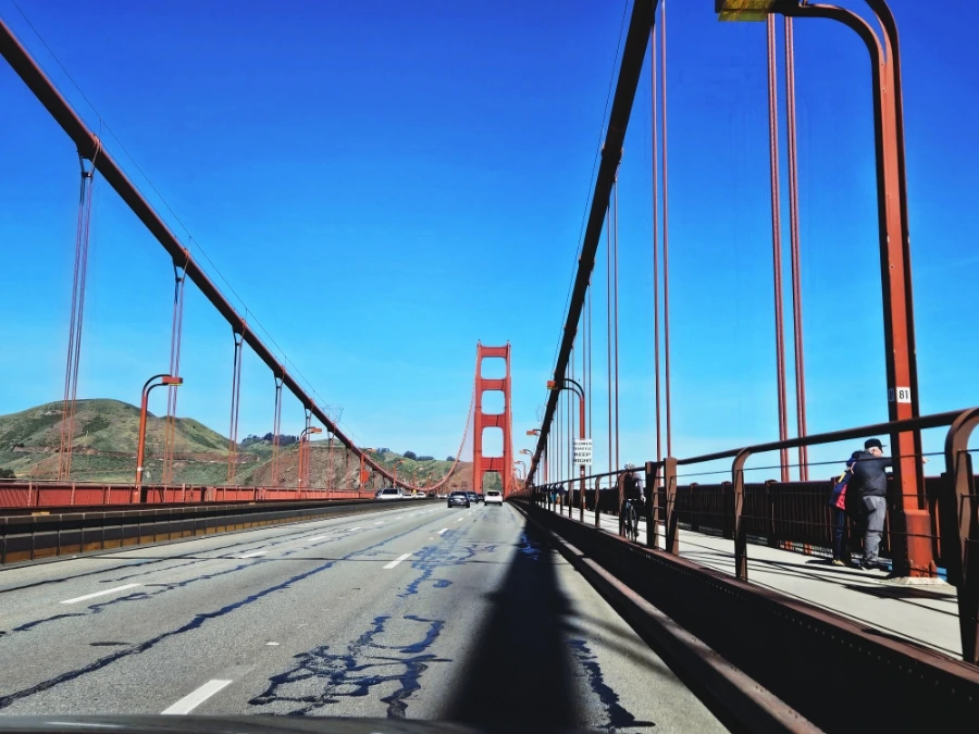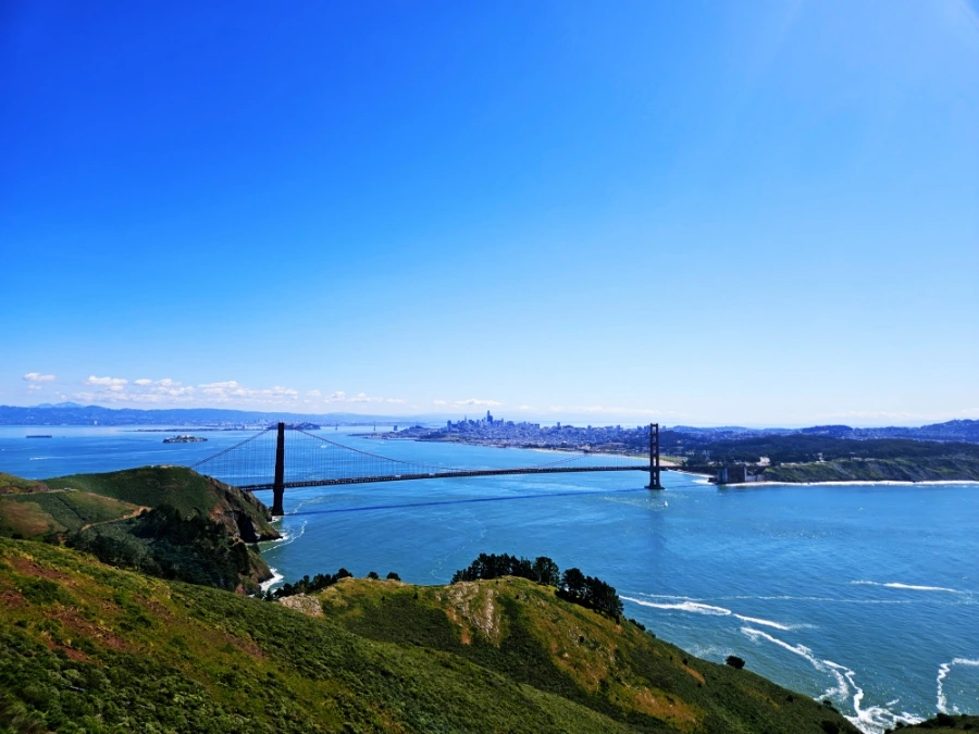 여유롭게 커피 한 잔을 마시고는 금문교를 차를 타고 지나가보았다. 위의 포인트와는 전혀 다른 각도에서 금문교를 바라볼 수 있는 호크힐에서 잠시 정차했다. 반대편에서 바라보니, 금문교와 샌프란시스코 도시 전체가 한눈에 들어왔다. 이렇듯 한 발 떨어져서 보니 첨단 테크를 달리는 빌딩 숲 지역과 주거 지역들, 그를 둘러싼 큼직한 바다와 천혜의 자연을 실감할 수 있었다. 한 발 떨어져 바라보는 것은 그 안에 있는 것과 늘 다른 느낌을 선사하곤 한다.