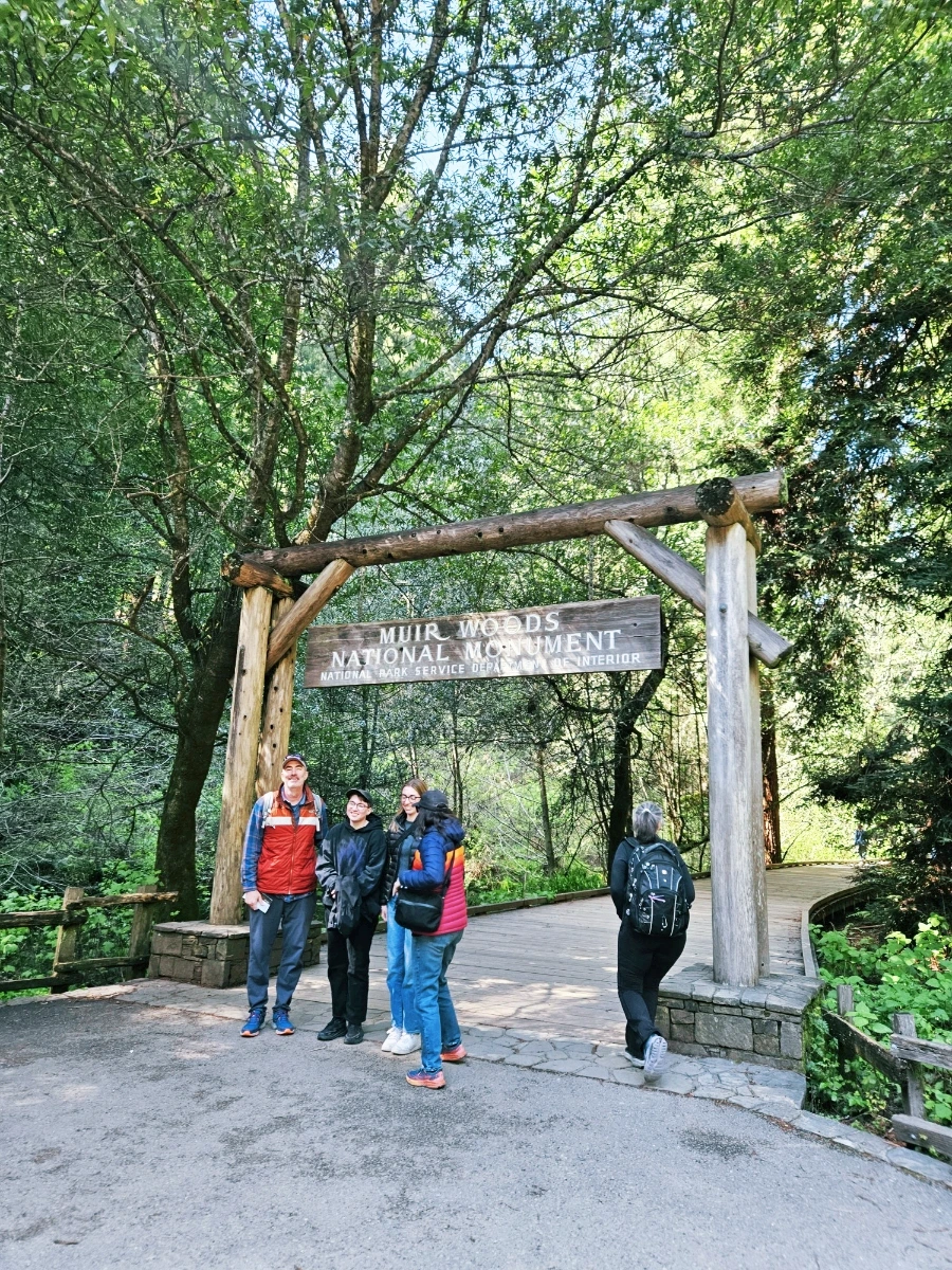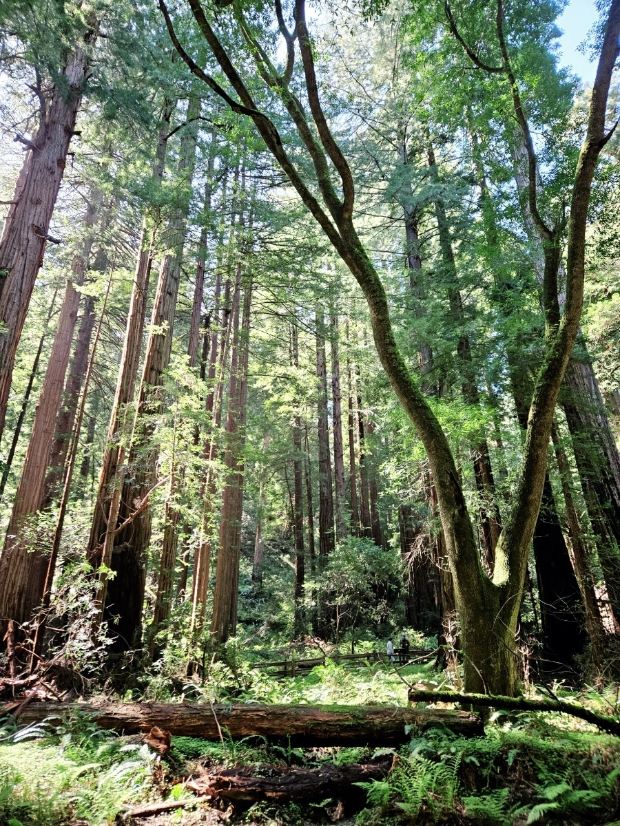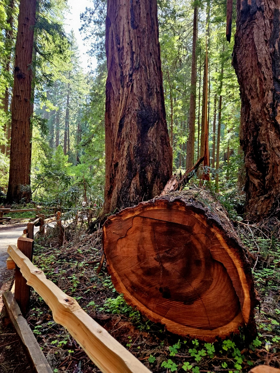 그렇게 금문교에서 호크힐을 지나 차로 조금 더 들어가서 뮤어 우즈 국립공원에 도착했다. 엄밀히 말하면 국립공원인 National Park와는 또 다른 단위인데, 구글맵에 국립공원이라고 번역되어 있으니 그냥 사용하도록 하겠다. 이곳에는 반지의 제왕에 나오는 나무족들을 연상케하는 큼지막-한 나무들이 빽빽하게 숲을 이루고 있다. 나이테를 분석해 봤을 때 A.D. 800년 경부터 있었던 것으로 추정되는 나무들도 있다고 한다. 나무들 근처에 가면 어찌나 작게 느껴지는지 모른다. 중간중간 쓰러진 나무들을 볼 수 있었는데, 그 단면의 지름이 거의 내 키만 하다.