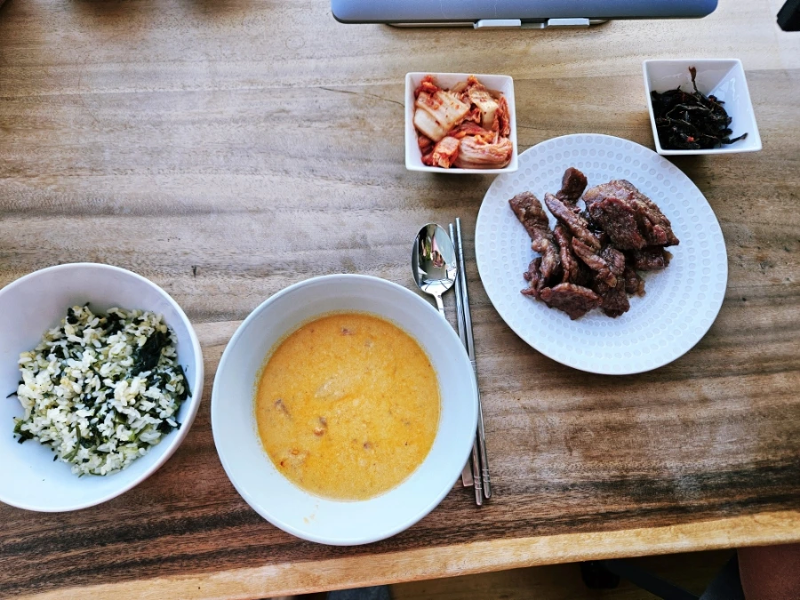 여행 내내 사촌 언니네서 신세를 졌다. 언니가 내준 침대가 정말 포근했다. 묵직하고 따뜻한 이불과 그 안을 가득 채워주는 전기장판의 온기란! 전날 관광의 피로와 안락한 침대의 시너지 효과로 진한 숙면을 경험할 수 있었다. 개운하게 한 잠 푹 자고 나오니 언니가 한식 아침을 차려주었다. 아침부터 소갈비를 구워주는 것은 너무나 치명적인 플러팅이 아닐까 생각했다.
