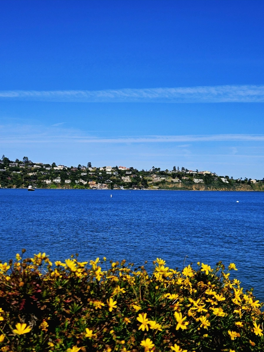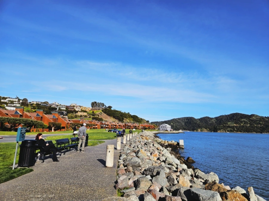소살리토에서 조금 더 가면 티뷰론이라는 동네가 나온다. 개인적으로는 소살리토보다도 티뷰론이 훨씬 아름다웠다. 소살리토는 살짝 관광지의 느낌이 난다면 티뷰론은 조용-하고 한적한 부촌의 느낌이었다. 아기자기하고 귀여운 영화 극장도 있고, 샌프란시스코가 한눈에 들어오는 공원에서 낚시를 즐기는 사람들, 벤치에서 풍경을 감상하는 사람들, 조깅하는 사람들, 애완견과 산책을 즐기는 사람들 등 조금 더 현지인들을 구경하는 재미가 있었다.