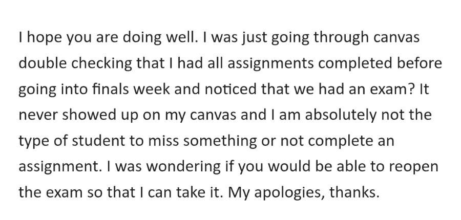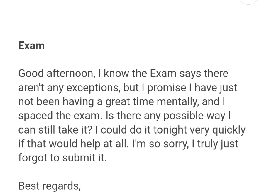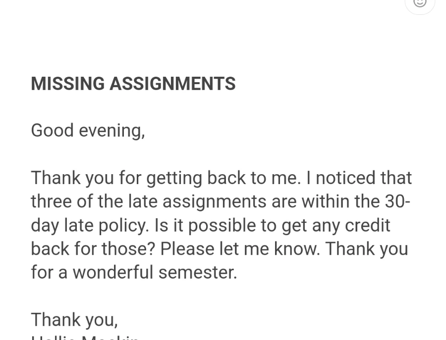 또 한 학생은 데드라인이 2월부터 4월에 걸쳐 있었던 과제 5-6개를 갑자기 5월 초인 파이널 주에 연달아 제출하더니, 학칙 상 한 학기에 과제 3개는 30일 늦게 제출한 것까지 크레딧을 받을 수 있는 정책이 있다며 말도 안 되는 거짓말까지 해가며 점수를 달라고 요구하였다(그런 학칙 없다, 맹세코 없다, 있을 리도 없다). 하루에 저런 이메일이 4-5통씩 온다.