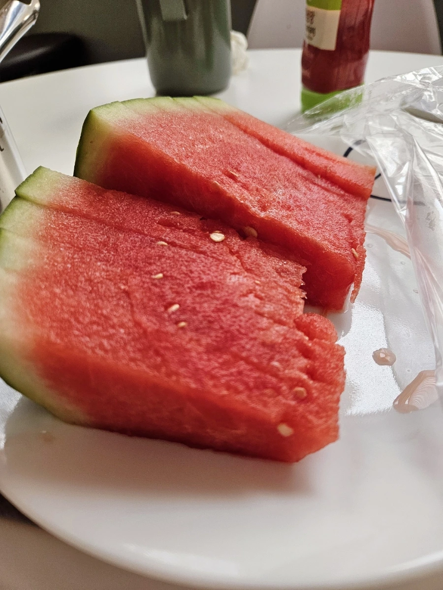 미국은 수박이 정말 싸다. 한 통에 6-7천 원 수준이다. 씨 없는 수박인데 달고 시원하고 맛났다. 요즘 많이 습하고 더워져서 야외 러닝을 하고 오면 몸이 되게 지치는데, 그때 냉장고에 차갑게 썰어둔 수박을 요란스레 베어먹으면 그만이다. 여기가 천국이요. 또 다른 날은 저녁에 비 예보가 있어 낮에 러닝을 다녀왔는데, 땀도 너무 많이 나고 더위 먹을 것 같이 머리도 띵했다. 돌아오자마자 블루베리 한가득 넣고 요거트와 얼음을 함께 갈아 스무디를 만들어 먹으니, 등골이 오싹하고 열기가 싹 가셨다.