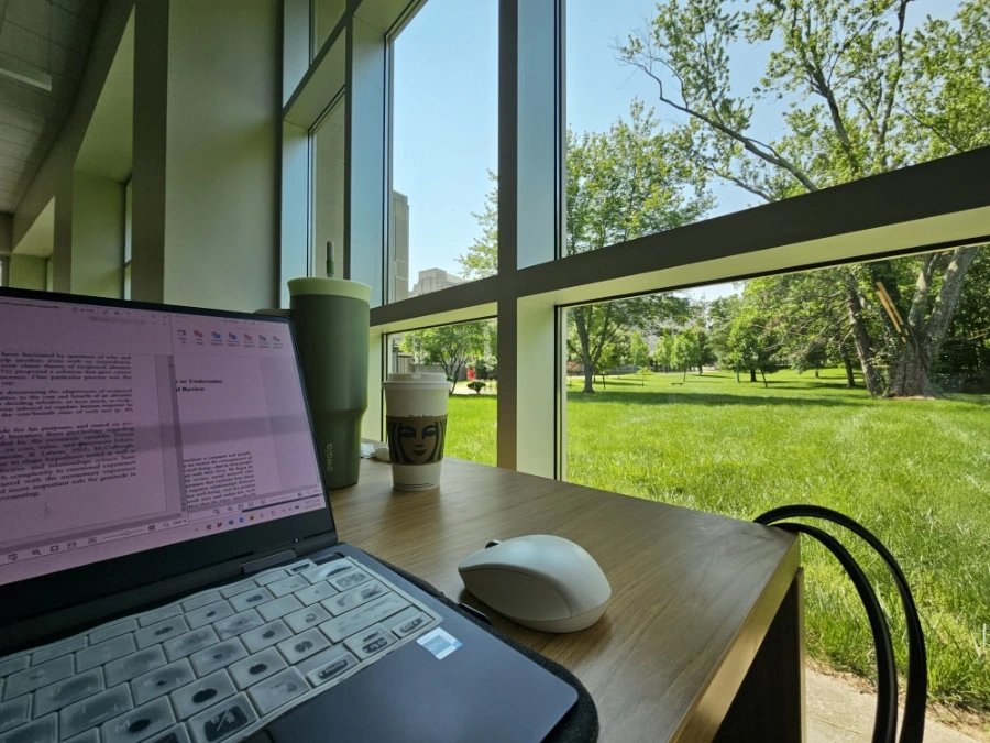 물론 그만큼 그가 떠나기 직전까지 피치를 한-껏 올려둔다는 것이 함정이다. 게으르게 지내고 싶은 마음을 겨우 부여잡고 학교로 향한다. 기분을 조금이나마 낫게 해보고자 볕도 안 드는 어두운 던전 같은 오피스 말고, 숲속 뷰를 자랑하는 단과대 도서관에서 일을 했다. 때마침 스타벅스 커피 쿠폰도 생겨, 작은 사치 한 잔을 실천해 보았다. 한국 가서 놀고먹을 생각밖에 없는 뇌를 어르고 달래가며 지금-여기에 데려오기 위해 불가피한 사치였다고 하겠다.