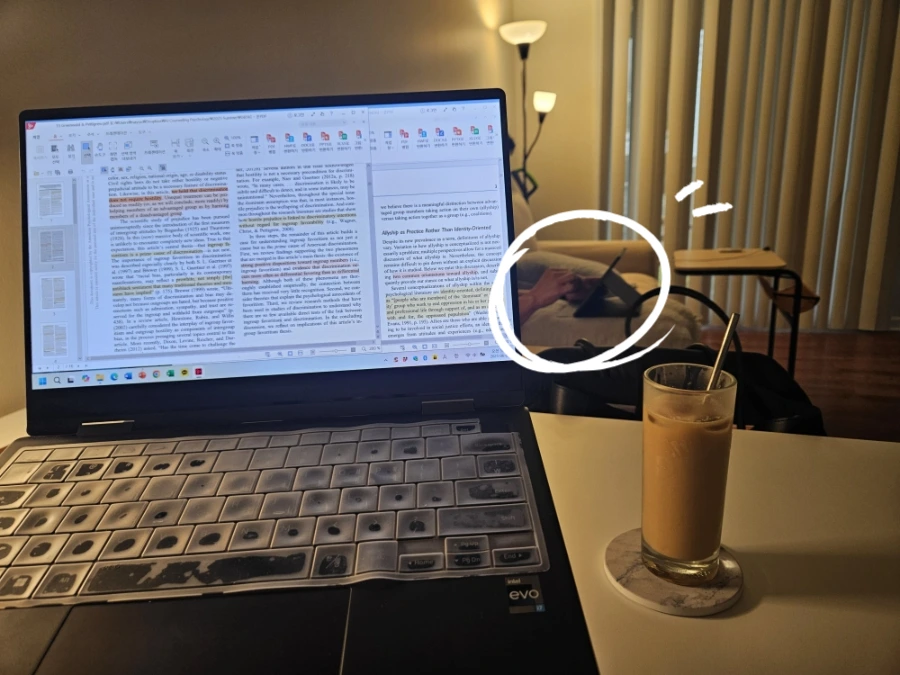 대면 수업이나 Writing group이 없는 날은 최대한 집에서 재택을 하려고 한다. 아이스 라테 한 잔 맛나게 풀어와 한숨을 푹푹 쉬며 일을 시작하노라면 옆에서 남편이 게임하는 소리가 요란하다(위의 왼쪽 사진 참조). 같은 박사과정인데 나만 왜 이리 바쁜지, 안 그래도 붙들기 힘든 사기가 더 떨어지는 기분이다. 심지어 이번 주 배신자 남편이 같이 학교에 가서 할 것을 하겠다는 약속을 한주 내내 하루도 안 지켜 버거킹 모닝을 쏴야 했다는 후문이다.