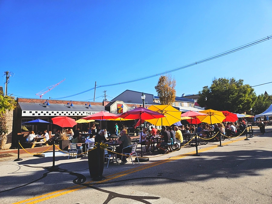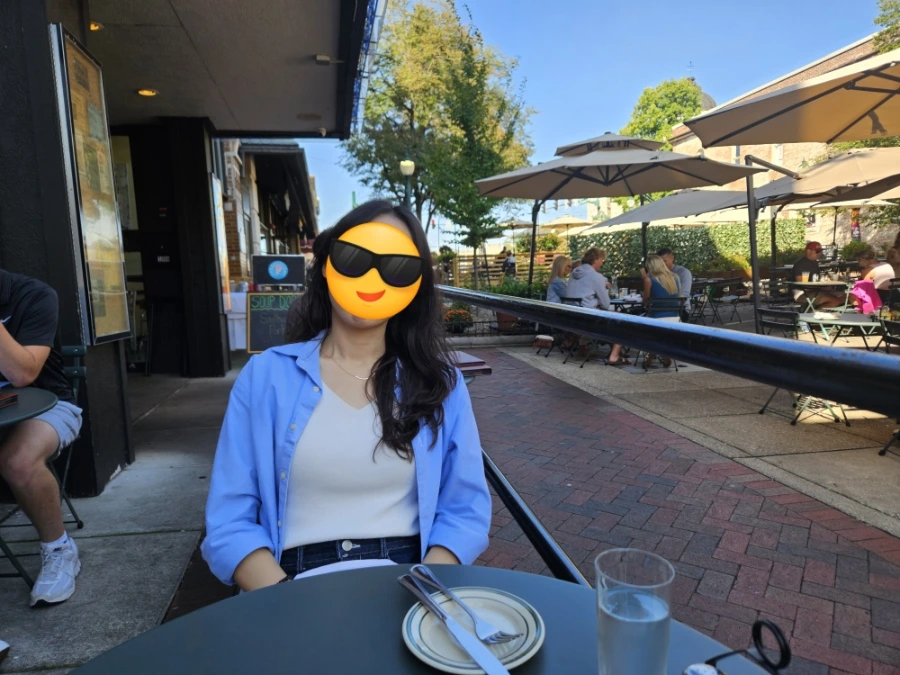 우리도 음식점에 야외 테라스 좌석에 한자리를 차지하고 앉았다. 날이 조금만 추워지면 이 테라스 자리는 곧 철거가 되기 때문에 그전에 꼭 즐겨보고 싶었다. 서늘한 그늘에 앉아 오고 가는 사람들을 구경하며 앉아 있으니 꼭 여행 온 것 같은 기분이 들어 설렜다. 오래간만에 나와서 코에 바람도 넣고 남이 해주는 밥도 먹고 하니 기분이 좋다. 잠시나마 일상에서 벗어나 기분 좋은 나들이였다.