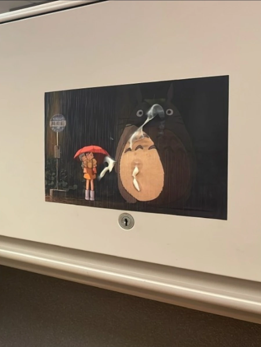그렇다. 오피스 테러를 당했다. 어느 날 아침에 출근을 해보니 누군가 내 책상 오피스에서 쓰는 노트 패드에 저렇게 역한 액체로 테러를 해 두었다. 그리고 책상 위에 둔 소지품도 훔쳐 갔다. 나 말고도 이런 봉변을 당한 이가 한 명 더 있었는데 바로 하필 우리 랩 후배 터키인 유학생 친구였다. 그 친구의 책상에 걸려있는 토토로 포스터 역시 액체 테러를 당했고, 다른 포스터는 아예 임의로 떼어 간 상황이었으며 책상에 둔 향수도 훔쳐 갔다.
