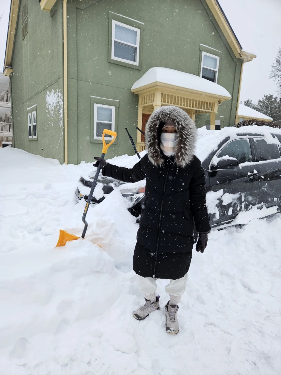 고된 제설 작업을 마치고는 남편과 동네 한 바퀴 돌고 왔다. 무릎까지 발이 푹푹 빠지는 길이었지만, 눈을 워낙 좋아해서 신나게 놀다 왔다. 다음 날 학교 출근을 어떻게 해야 하나 걱정도 되었지만, 그간 바쁘고 스트레스받던 일상에 꽤나 즐거운 이벤트였다.