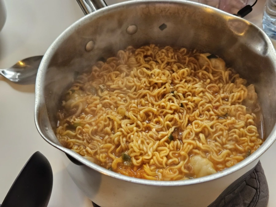 다채로운 서양 미식의 세계 탐험을 마치고 집에 와서 첫 끼로 먹는 것은 단연 라면이다. 즐거운 새로운 맛들의 향연이었는데, 여행에서 연달아 양식들을 먹으니 또 칼칼한 라면이 그렇게 맛있을 수가 없다. 궁극의 맛 그 끝에는 언제나 남편 표 라면이 있다(?).