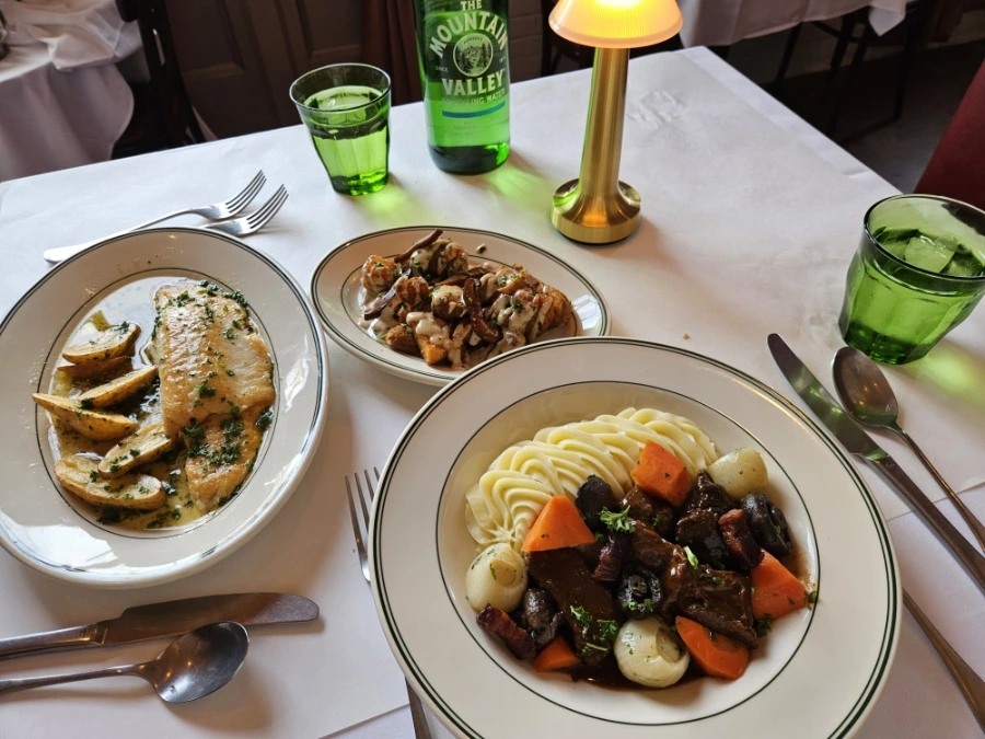 다행히 메인 요리와 사이드는 성공적이었다. 송어구이를 레몬 버터 소스에 곁들여먹는 메뉴와, 비프 부르기뇽을 각 메인 디시로 시켰고, 사이드로는 돼지감자튀김을 시켰다. 비프 부르기뇽은 부드러운 갈비찜 그 자체였다. 헤베베하고 살살 녹는 식감이라 나이프가 따로 필요 없이 부드러웠다. 개인적으로 부업 주부로서 집에서 생선요리하기가 쉽지 않아서 외식할 때 메뉴에 있으면 고기보다 생선을 택하는 편인데, 좋은 선택이었다. 송어구이가너무 담백하고 버터소스와 잘 어울려서 소스까지 싹싹 긁어먹었다. 근래 먹은 생선요리 중에 단연 답이었다.