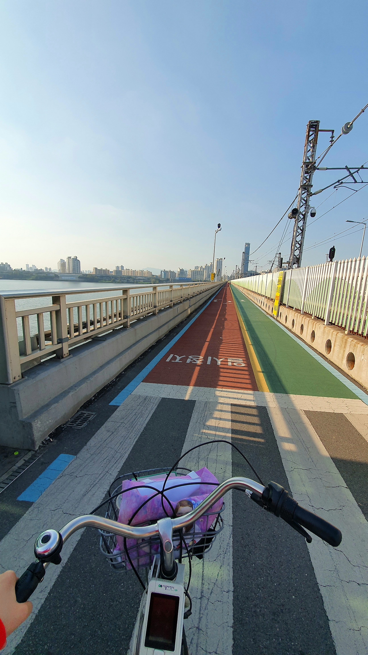 인상적이었던 건, 공원도 가로지르고 한강도 건너야 한다는 것이었다. 조금 겁이 나기도 했다. 자전거로 한강을 건널 수가 있나? 항상 차로만 여러 대교들을 지나 봤지 자전거나 도보로 지나 본 기억이 없기 때문이다. 에라 모르겠다. 21세기 스마트 지도를 믿어보자 하며 여정을 시작했다.