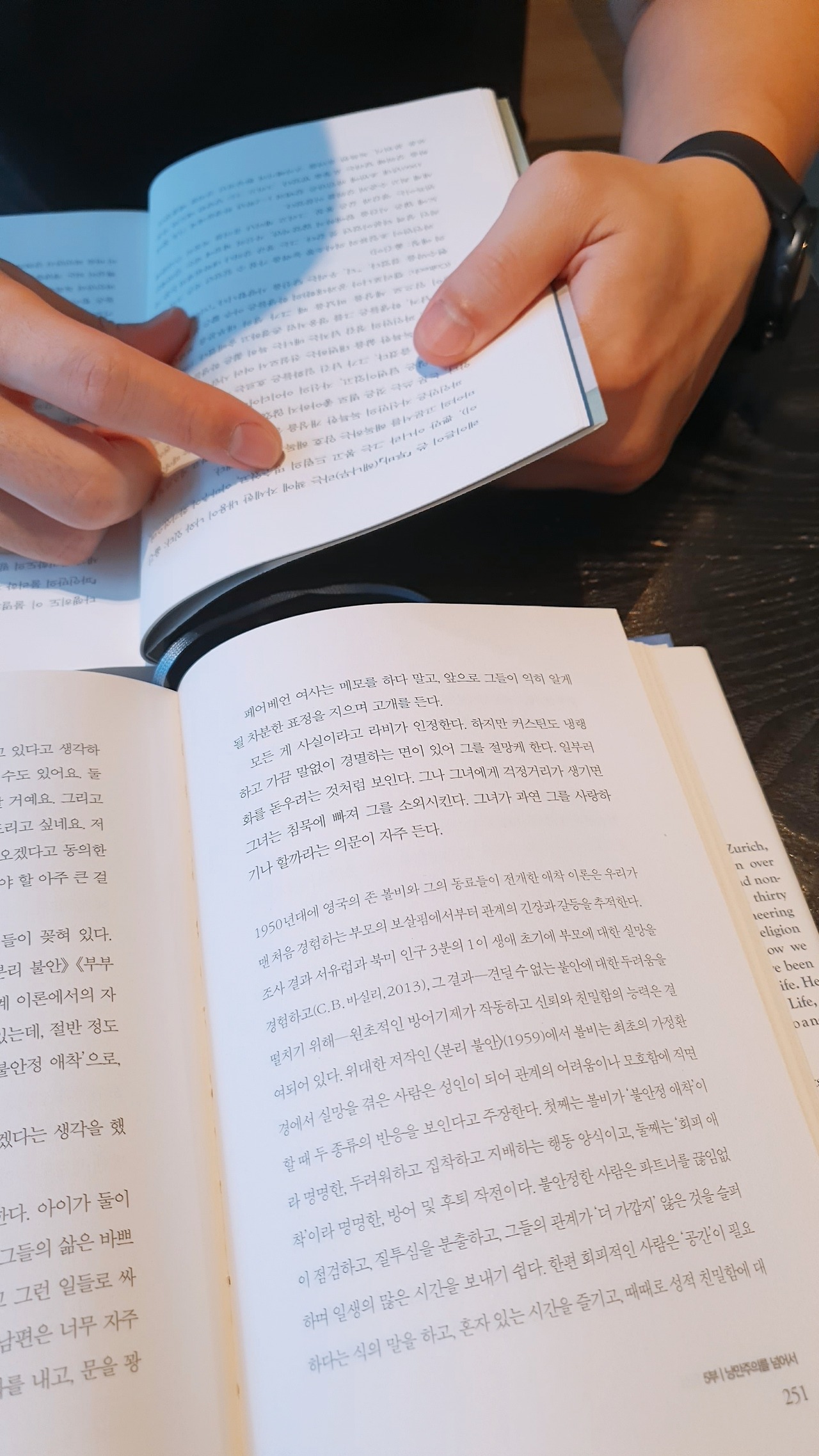 알랭 드 보통의 소설과 이름 모를 물리학 책이 테이블에 마주 놓인다. 알랭 드 보통의 애독자로서, 작가의 인사이트에 감탄을 늘어놓으며, 읽었던 내용이 얼마나 와 닿았고 큰 깨달음이었는지 이야기를 하다 보니 목이 조금 아프다. 그렇지만 목에 핏대 세우며 설파할 만한 내용이었다(고 아직도 감동 어린 채로 확신한다). 책 감상은 주저리주저리 나눠야 제 맛이다.