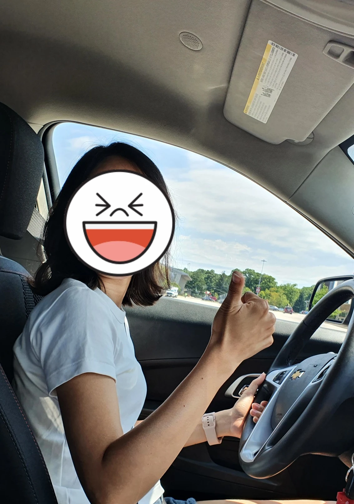 '와..... 내가 가족을 등교시켰다! 후진해서 주차도 했다!'