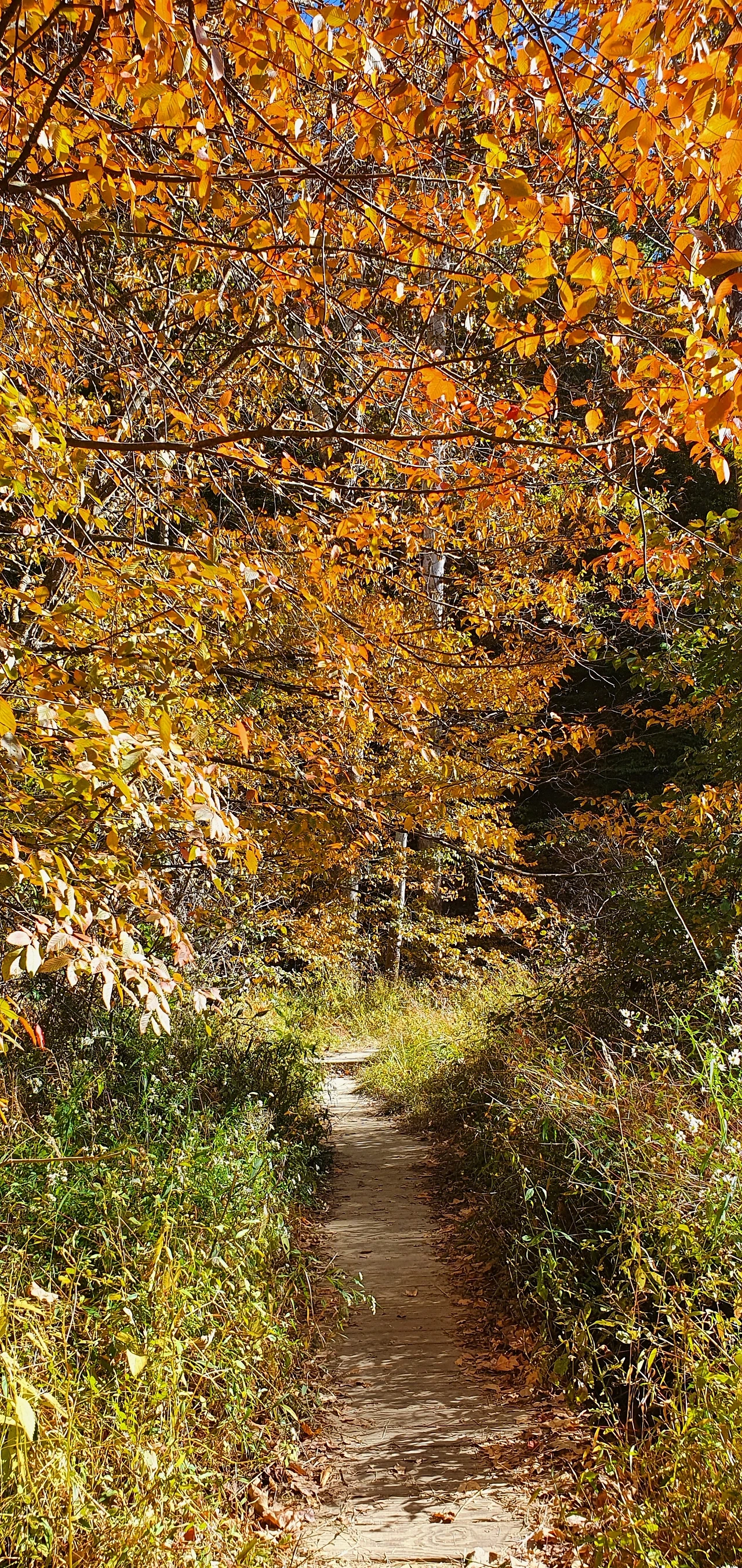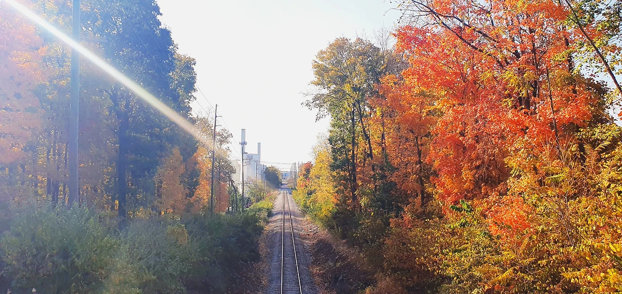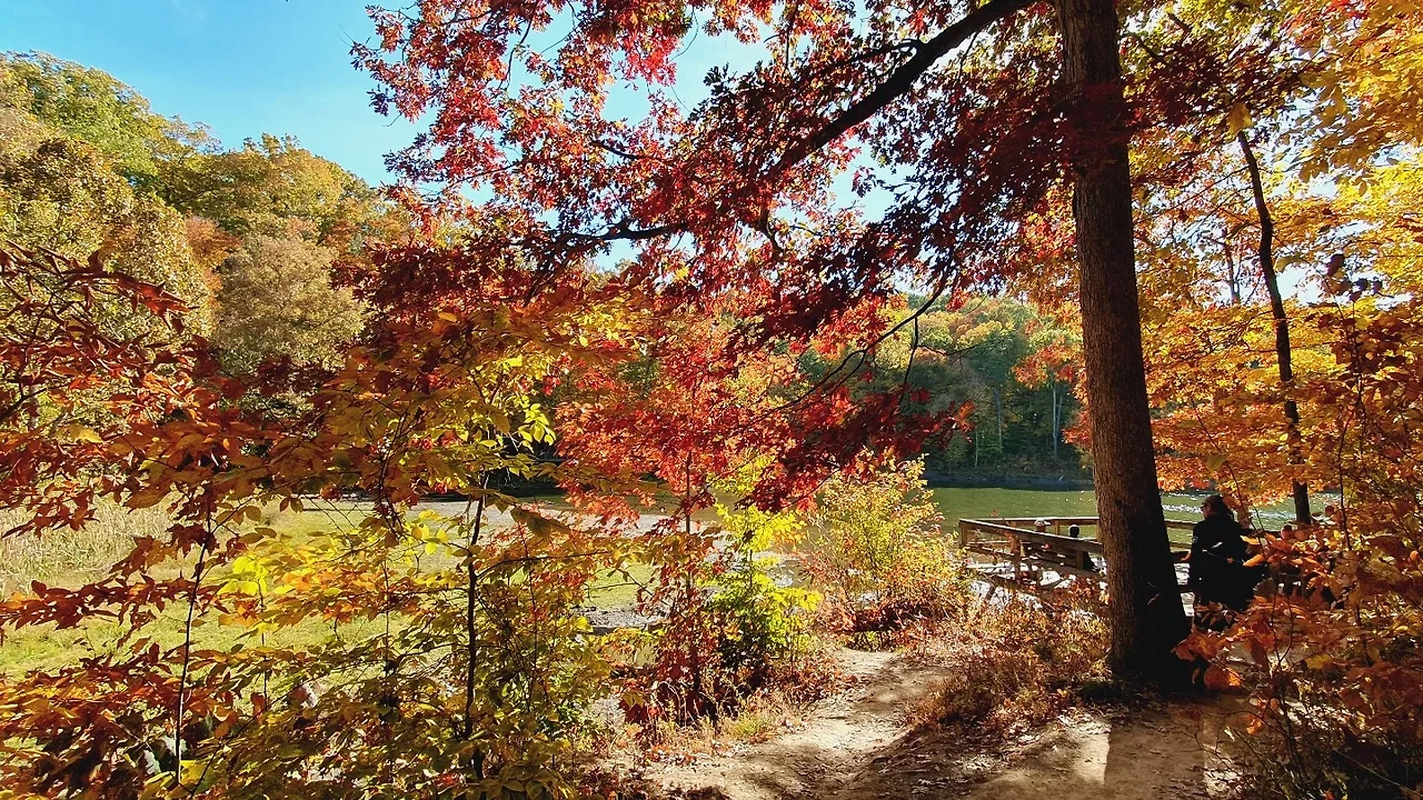 이 지점은 딱 하이킹 코스의 반환점이 되는 중간 지점이다. 반대쪽 시작점에서 찍을 때도 예뻤는데, 이곳에서 바라보는 뷰도 예쁘다. 호수도 더 가까이 있고, 볕도 잘 들어온다. 한 바퀴를 천천히 도는데 한 시간 정도 걸렸다. 가을을 느끼기에 가장 좋은 코스였던 것 같다. 공원을 다녀온 다다음 날부터 최저기온 영하를 찍으며 너무 추워져서, 이날 다녀온 것이 신의 한 수였다고 한다.