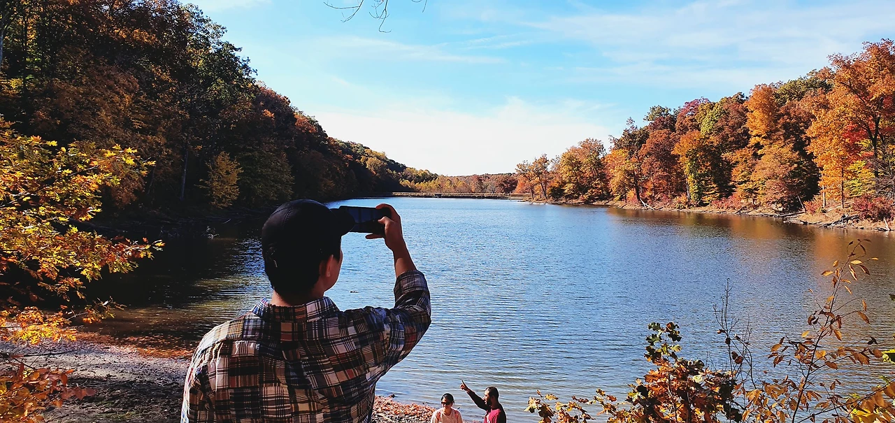 여러 코스 중, 호숫가 주변을 하이킹하고 싶어서 7코스를 골랐다. 7코스는 하이킹 난도가 낮아서 부담 없이 걸어 다닐 수 있고, 호수 옆에 바로 딱 붙어서 걸을 수 있어 경치가 좋다. 7코스 시작점 옆에 주차장이 있어 차를 세우고 내려서 걸어갔다(주차는 현금 7달러다). 가장 먼저 들어오는 것은 무엇보다도 호수 뷰다. 호수 주변 나무들이 빼곡하게 단풍으로 물들어 있어 정말 예뻤다. 알록달록한 색감을 눈에 꼭꼭 담고 하이킹을 시작했다.