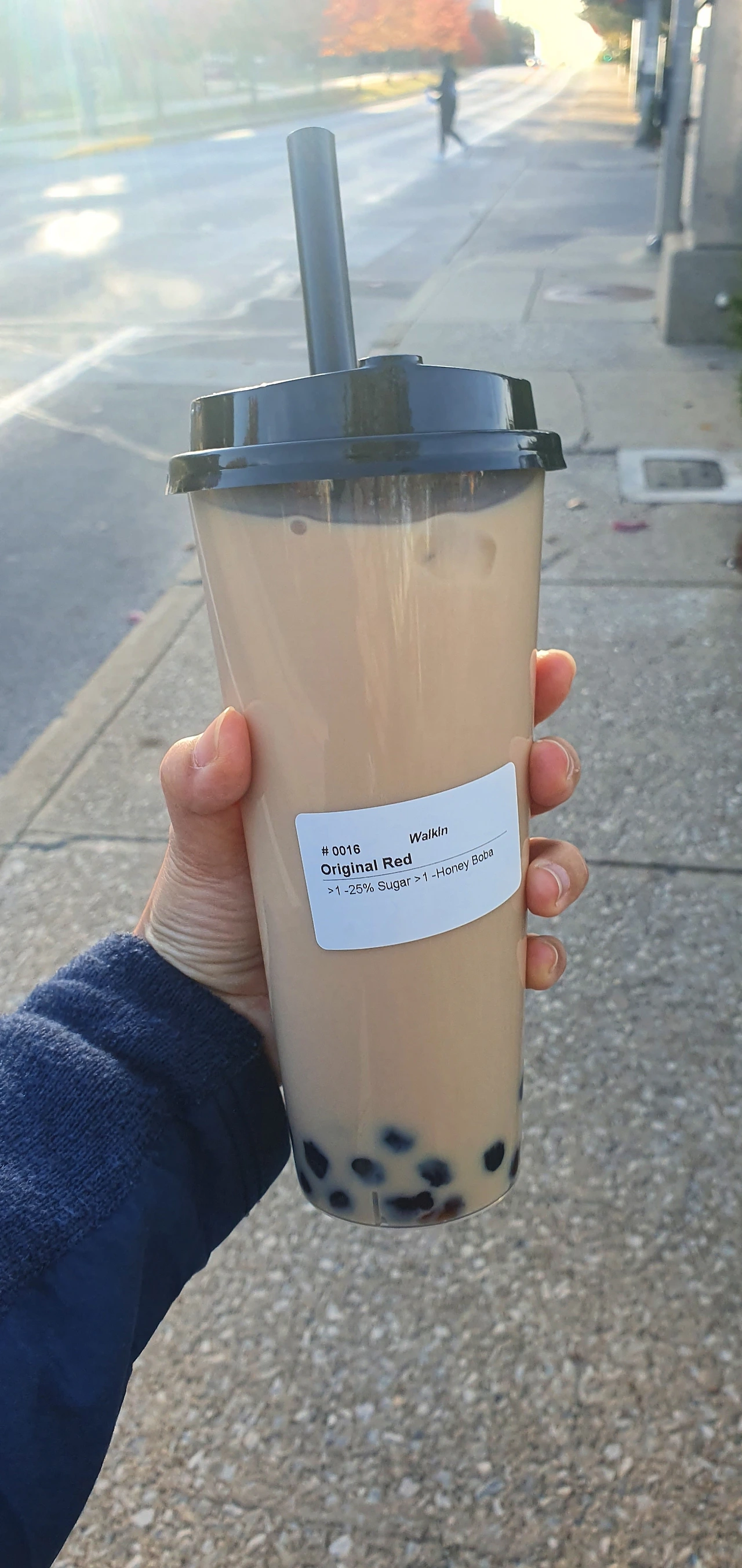 운동을 마치고 또 30분을 걸어 집에 갈 생각에 조금 막막하기는 했지만, 제일 좋아하는 오리지널 밀크 버블티 당도 25%를 한 잔 사서 또다시 힘을 내서 걸었다. 이렇게 큰 사이즈를 기대한 것은 아니었으나 이 사이즈뿐이라고 해서 그냥 받아왔다. 밀크티만 먹다 죽을 사이즈였다. 아직도 미국 음식의 양은 늘 버겁다. 그렇지만 최애 음료와 함께 또 신나게 가을 석양을 바라보며 동네를 걸어왔다.
