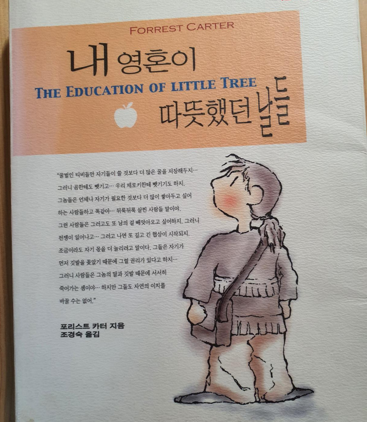 오래전 읽었던 책이지만 감동의 여운이 되살아났다. 인디언인 조부모가 어린 손자인 주인공 ‘작은 나무’를 양육하는 이야기였다. 완전 자연의 이치로 아이를 키우던 이야기여서 요즘 시대와 너무 비교가 되었다. 방과 후에도 학원 순례를 하는 아이들이 눈에 선해서 더 관심 있게 읽었던 기억이 난다.