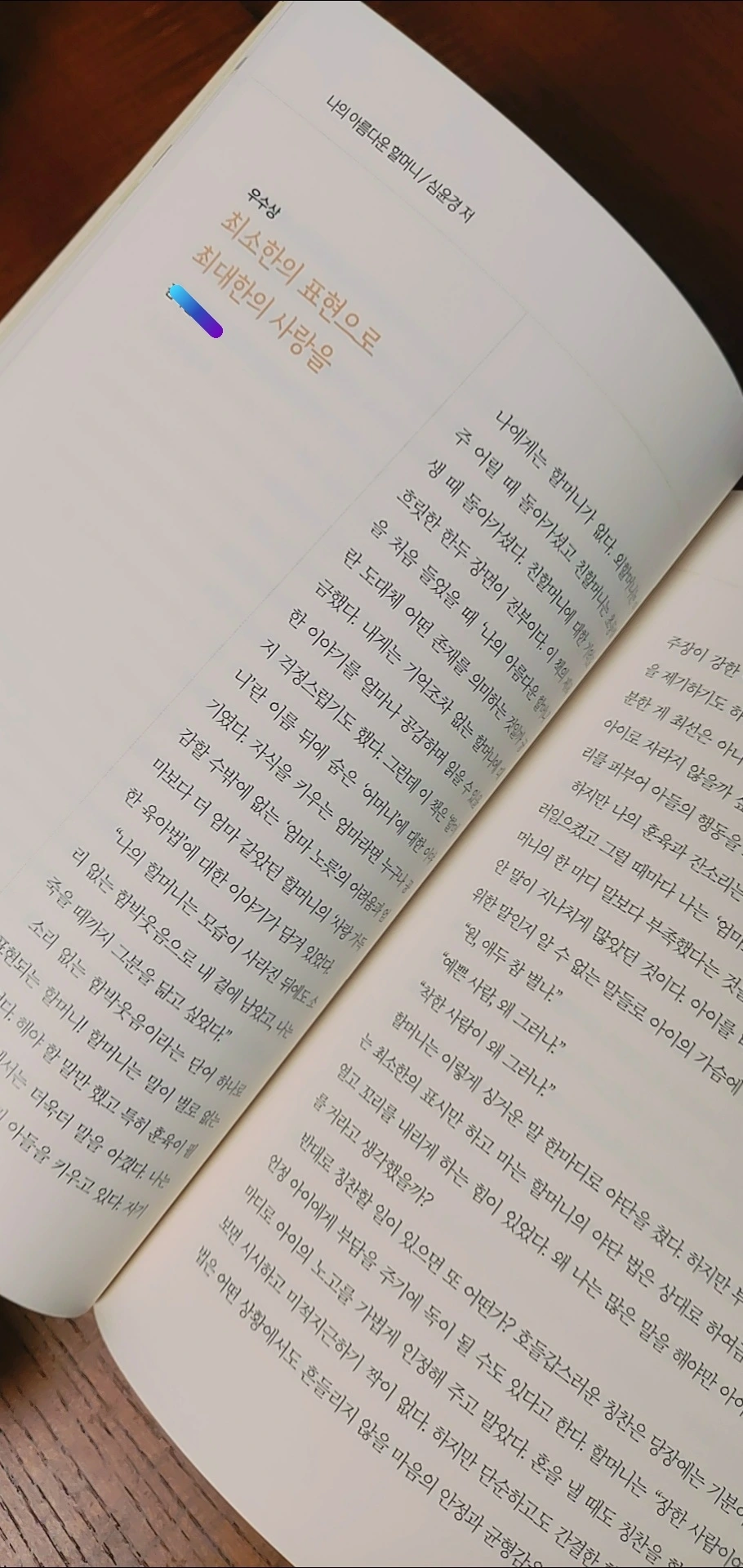 총 세 권의 책이 나에게 왔다. 글쓰기를 본격적으로 시작하면서 이룬 성과이자 노력의 결과물들이다. 첫 번째 책은 2023. 전주시독서대전 시민공모전에서 우수상을 수상한 글이 실린 작품집이고, 두 번째 책은 '월간에세이'로부터 직접 원고 청탁을 받아 쓴 글이 실린 잡지이다. 마지막 책은 전북대학교 글쓰기 프로젝트를 통해 쓴 단편소설이 작품집으로 엮어져 나온 것이다. 물론 세 권 다 오로지 나의 이름만 걸고 나온 책이 아니기에 아직도 나는 정식 작가라고 볼 수는 없을 것 같다. 월간에세이는 원고료를 받았지만 나머지 두 권은 비매품으로 출간되는 작품집일 뿐이다. 그래도 나는 종이에 인쇄되어 나온 나의 글을 보면서 마치 나 자신이 무대 위에 선 주연배우가 된 것 같아 무척 뿌듯하고 설렜다. 아주 작고 소소한 걸음일 뿐일지라도 내겐 소중하고 값지다.