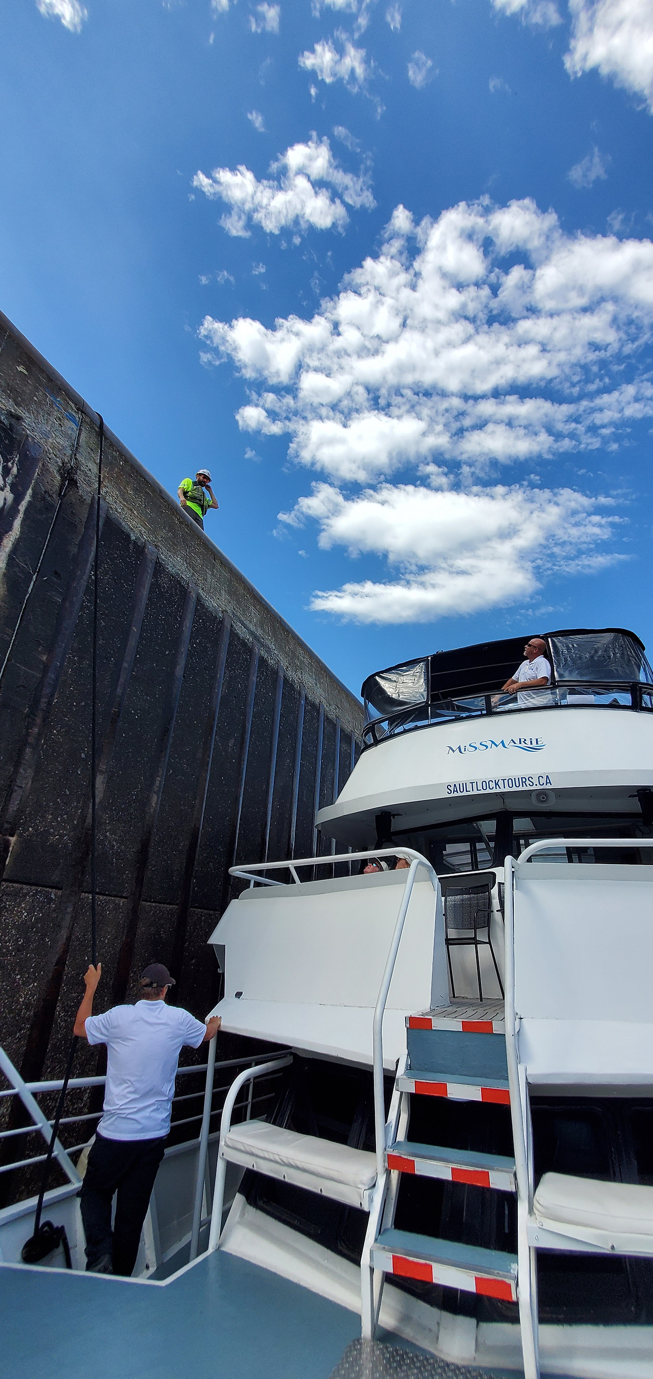 Miss Marie 보트는 70피트 길이의 2층 구조로, 최대 100명의 승객을 수용할 수 있다. 이 보트는 원래 토론토 항구에서 관광용 요트로 사용되다가 2022년에 St. Mary's River로 옮겨졌다. 투어는 로버타 본다르 마리나(Roberta Bondar Marina)에서 출발한다. 캐나다 최초의 여성 우주인인 로버타 본다르 박사를 기리기 위한 로버타 본다르 공원 옆에 위치해 있다. 주소는 65 Foster Drive다. 우리가 머물렀던 호텔에서 걸어 2-3분 내에 위치해 있어 편리했다. 수로 투어 동안 길이 300미터까지의 화물선이 사용하는 상업용 수로와 캐나다의 쑤세모리 운하 국립 사적지(Sault Ste. Marie Canal National Historic Site) 수로를 통과한다. "수상 엘리베이터"를 통해 항해하는 것은 정말 독특한 경험이었다. 큰 화물선과 함께 미국 수로를 통과할 수도 있다. 우리가 탄 캐나다 보트를 따라 미국 보트가 따라왔다. 오래전에 나이아가라 지역에서 본 Welland Canal이 생각났다. 많이 배우고 느낀 두 시간이었다. 값지다!