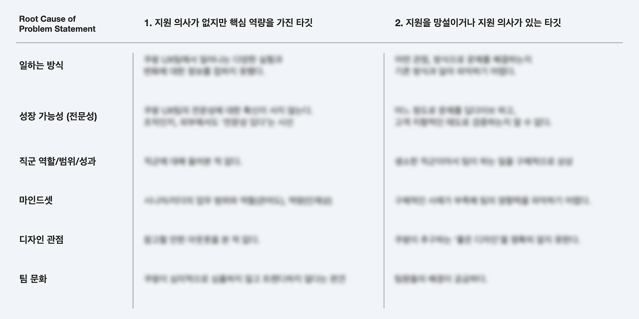 쿠팡이츠 팀의 시니어 채용에서는 외부 시니어 UX 디자이너를 리서치하며 근원을 찾아 나섰다. 비즈니스 전망, 커리어 성장 가능성, 팀 문화와 근무 환경, 과제에 대한 부담이 주된 원인이었다. 그다음 각 의문을 해소할 수 있는 가장 효과적인 방법을 모색했다. 웨비나(미니 컨퍼런스), 소규모 이벤트, PR 보도자료, 커피챗, 1:1 스크린 콜, 아티클 등 원인에 따라 적합한 방법을 정리하고, 그중 콘텐츠 전략가가 지원할 수 있는 콘텐츠를 찾아 문제를 해결했다. (쿠팡이츠 아티클)