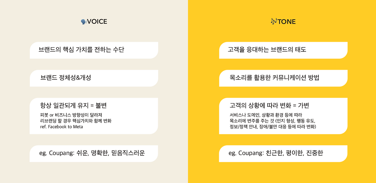 1) 브랜드가 고객에게 전하는 목소리와 말투 정의 (Voice&Tone)