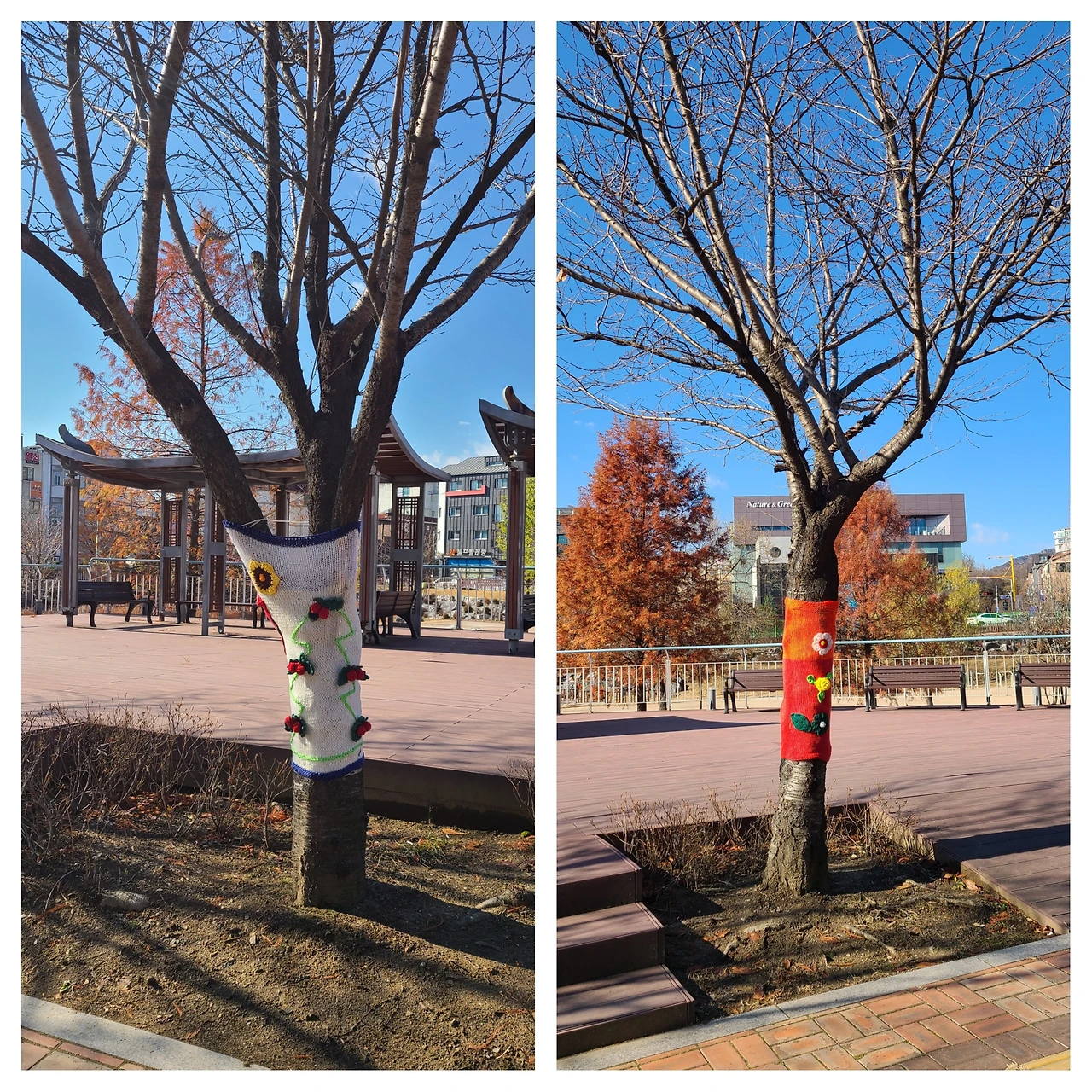 대부분 재능기부와 자원봉사 형태로 뜨개질에 참여한다는 기사를 보며 누군지 모르지만 나무에 옷을 입혀주신 그분들께 감사한 마음이 들었다. 그리고 그동안 누가 우리 동네의 나무를 이렇게 예쁘게 꾸며주는지, 추위와 병충해로부터 보호하고 있는지 아무런 관심도, 호기심도 없던 내가 조금 부끄러워졌다.