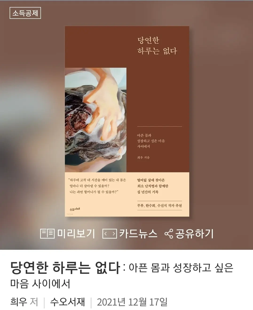8월 두번째 독서모임은 희우 작가님의 책 <당연한 하루는 없다>입니다. 원래 7월에 두 번째 모임 책으로 예정되어 있었는데 지난달에 휴가로 빠지는 분이 많아