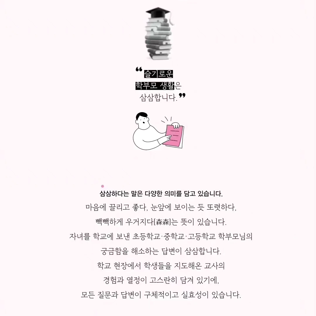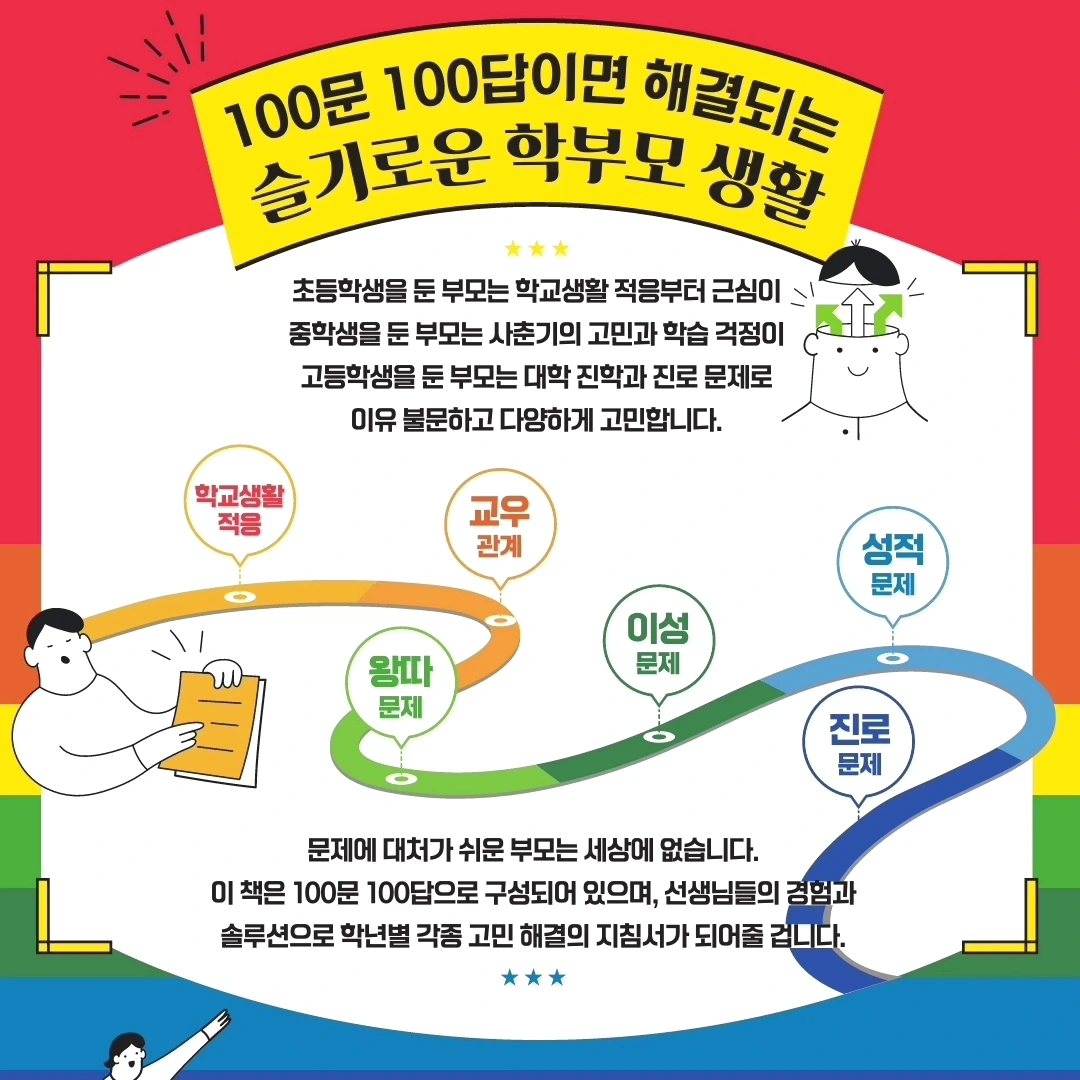 교육은 학부모, 학생, 교사의 이인삼각 달리기라고 할 수 있다. 이 책은 이제 막 처음으로 학부모가 된 부모부터 대학 입시로 고민하는 입시생 부모까지, 자녀 교육의 먼 여정을 밝혀줄 책이다.