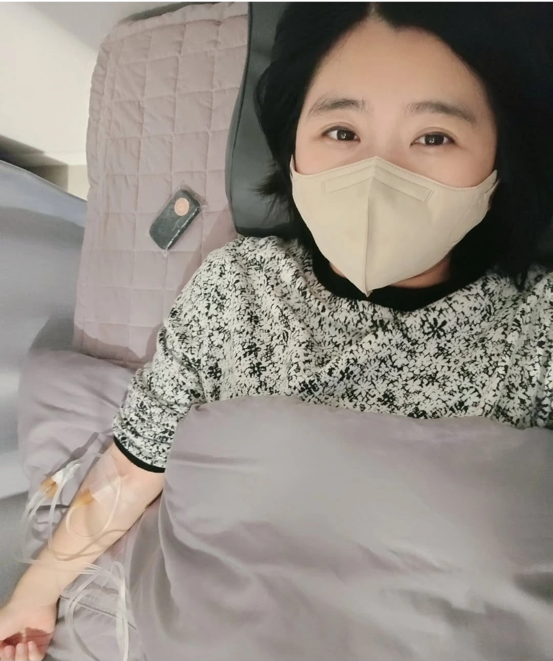 요즘 보통 사람들은 코로나 증상이어도 별다른 처방이 없기에 코로나 검사도 하지 않는다고 한다. 하지만 암환자는 코로나이면 팍스로비드를 먹어야 한다고 하시며, 코로나 검사를 시행했다. 다행히 검사 결과는 음성이었고, 수액을 맞으며 긍정주문을 외우고 일부러 웃으며 사진도 찍었다. 긍정주문은 암뿐만이 아니라 다른 모든 것도 물리칠 수 있다는 생각이 들었기 때문이다.