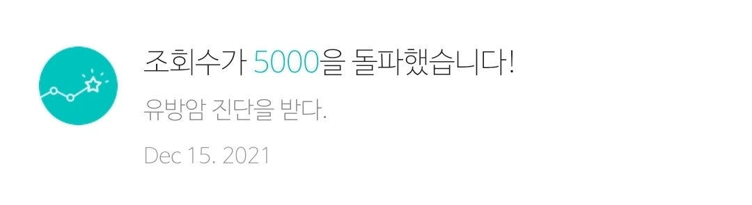 조회수 5000이라는 숫자가 가늠이 되지 않는다. 물론 조회를 한 모든 사람이 글을 끝까지 읽는 것은 아닐 테지만 5,000명의 사람들이 나의 글을 마주했다니 실감이 나지 않는다. 지금도 매일 유방암을 진단받는 환자들이 늘어가는 것은 가슴 아픈 일이지만, 어차피 가야 할 투병의 길이라면 모든 환우들이 최대한 시행착오를 겪지 않고 담담히 이 길을 걸어갔으면 한다. 그리고 그 길에 나의 이야기가 작은 등불이 되었으면 좋겠다.