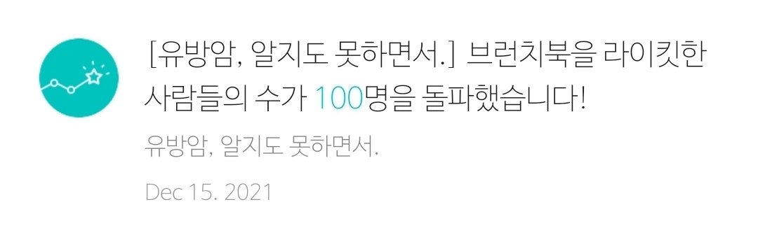결과를 기다리며 브런치북에 담지 못한 뒷이야기도 계속 써나갔다. 공모전이 끝났어도 유방암 치료는 계속되고, 나의 삶은 계속 이어지니까. 그러는 사이 처음 한 자리로 시작한 독자수는 세 자리가 되었고, 나의 글을 읽어주는 사람들이 점점 늘어났다. 나를 작가라고 불러주고, 내 글을 기다려주는 사람들이 있다는 것에 얼마나 가슴이 두근거렸는지 모른다. 가장 기분이 좋은 순간은 내가 쓴 글을 읽고 희망과 용기를 얻었다는 메시지를 받을 때이다. 글을 읽으며 자신의 모습이 떠올라 눈물이 났고, 동시에 위로가 되었다는 메시지를 보면 가슴이 벅찼다. 내가 쓴 글이 다른 이의 마음을 위로하고, 공감을 불러올 수 있다니. 얼마나 감사하고 멋진 일인가!