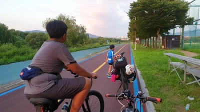 출발하기 전 국토종주에 대한 검색과 준비를 모두 남편이 했다. 종주 중에 길을 찾는 일도. 날이 어두워진 후 숙소를 찾는 일도 남편이 했다. 난? 나 무얼 했던 걸까? 당시에는 깨닫지 못했다. 모든 걸 남편에게만 의지하고 졸졸 따라만 다니고 있던 나를. 이 날도 마찬가지였다. 난 바닥과 등 사이에서 힘겨루기를 하고 있는 동안 남편은 오늘 가야할 길을 찾는 등 일정과 옷정리, 아침 먹을 장소 까지 찾아보고 있었던 것이었다.