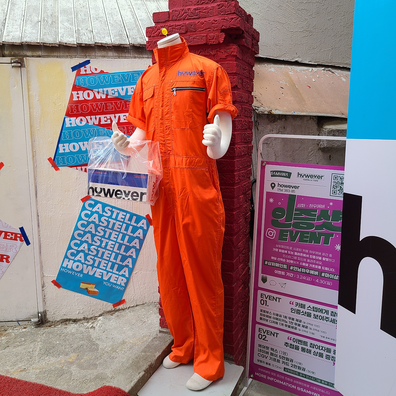 인테리어의 하드 웨어는 '컬러'로 지정하고 소프트웨어로 '그래픽'을 활용하여 빈 여백을 채웠다. 벽돌 건물에 자유롭고 생동감있게 자리잡은 배치 역시 하우에버 연남만의 분위기를 자아낸다.