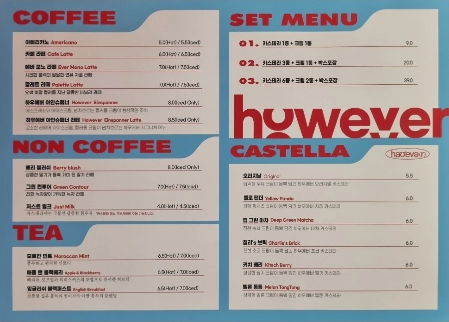 하우에버 연남에서 눈에 띄는 요소는 '그래픽아트'이다. 폰트부터 포스터, 패키지, 컵과 그릇까지 힙하고 팝아트적인 측면을 치열하게 고민했다. 폰트의 배열과 포스터의 색상 매치는 그저 홍보용이 아닌 하나의 아트 작품이다.