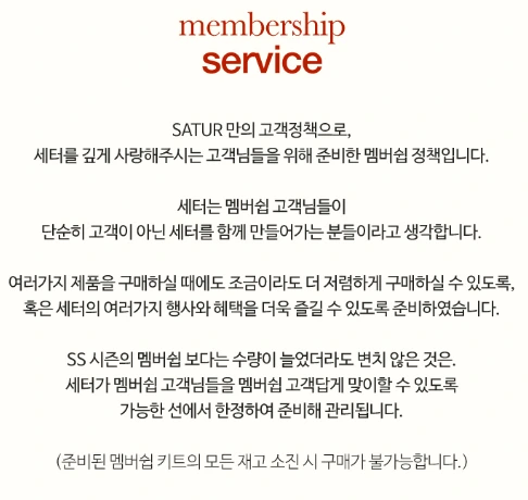 세터는 상품, 모객, 접객, 고객 관계 관리 4가지의 밸런스를 중요하게 여긴다. 세터는 고객의 브랜드로의 감정적 락인을 위한 유료 멤버십을 운영한다. 한정 수량으로 진행한 세터의 유료 멤버십(시즌별 4만 9 천 원)은 늘 SOLD OUT 된다. 세터는 멤버십에 가입한 고객에게 전 제품 15% 할인과 7% 적립을 적용해준다. 또한 양말, 가방끈, 스티커 등을 포함한 멤버십 키트도 제공한다.