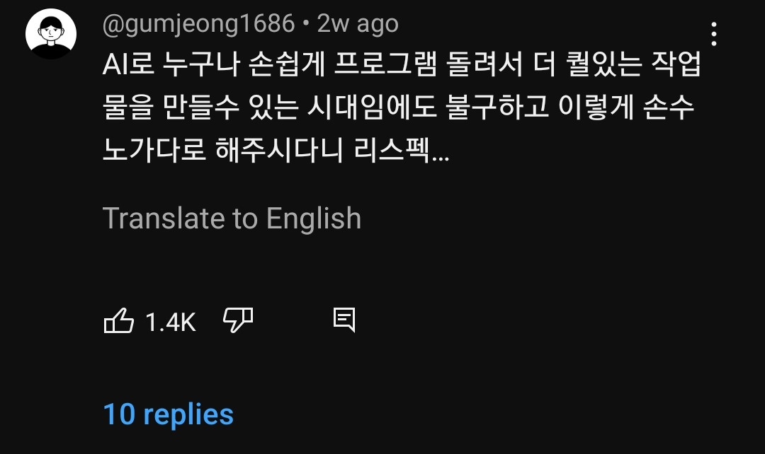 황정민 리믹스 쇼츠의 댓글을 살펴보면, '정통감성', '아날로그 못 이김' 등의 재치 있는 반응들이 등장하고 있습니다. 생성형 AI 프로그램을 활용한 커버 영상이 쏟아지는 상황에서, 오랜 시간을 들여 손수 편집한 커버 영상을 만들었다는 점에서 '힙하다'라고 여겨지는 것이죠.