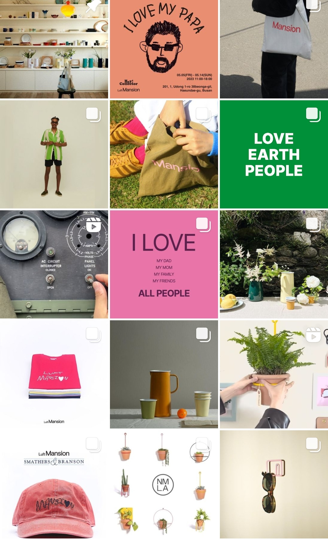 루프트맨션은 감각적이고 힙한, 재미있고 포인트있는 브랜드로 자리매김했다. 해리단길의 특정 장소의 경험과 특수성을 가지면서도 온라인을 통해 팬을 확장하고 있다. 다양한 카테고리를 넘나들지만 조화로운 루프트맨션의 브랜딩은 SNS 채널에서도 잘 드러난다.