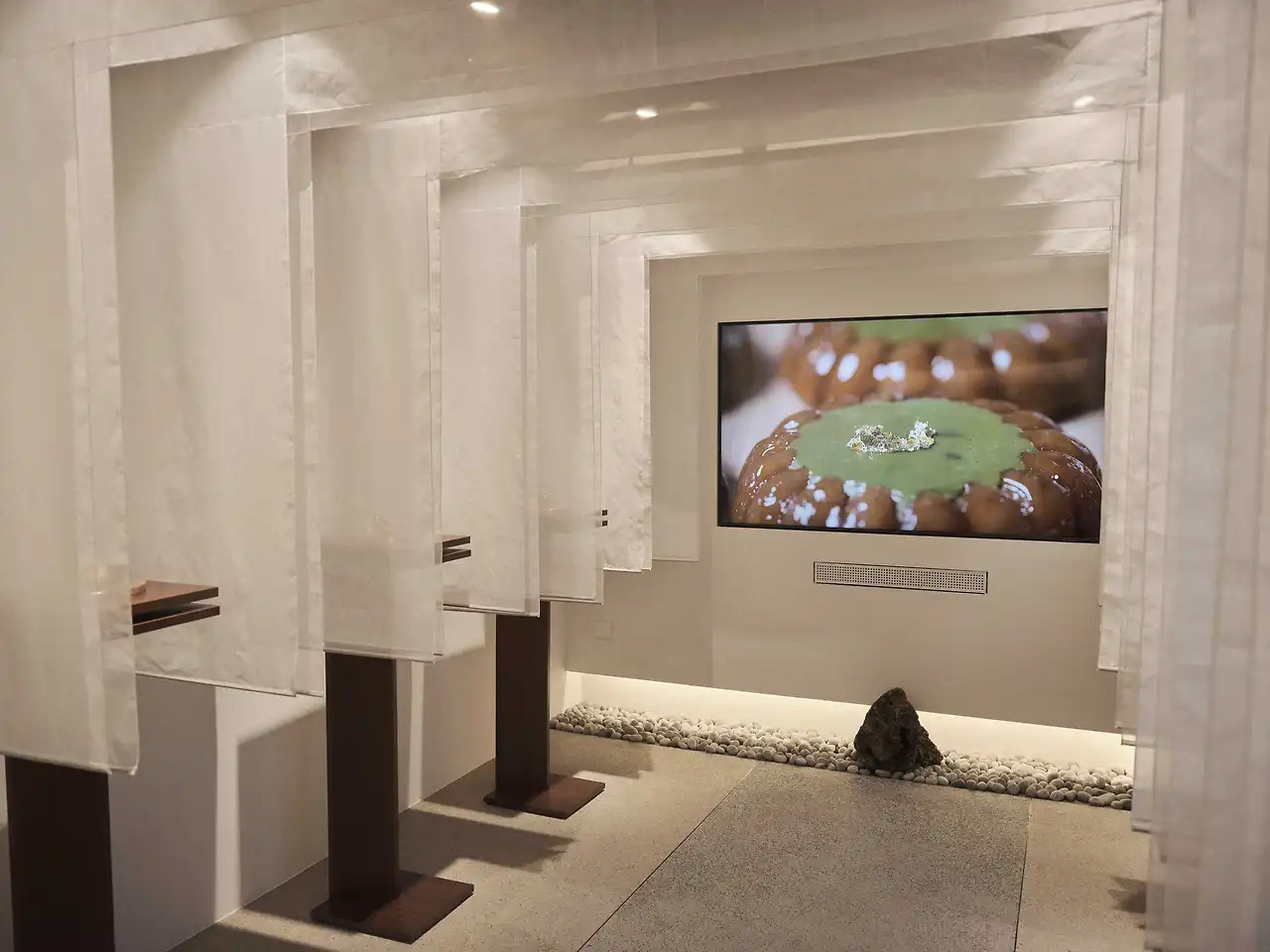 쇼룸 내부의 약과를 디스플레이도 하얀 천으로 가리는 장치를 통해 약과 하나 하나를 감상하도록 갤러리와 같은 공간을 의도했다.