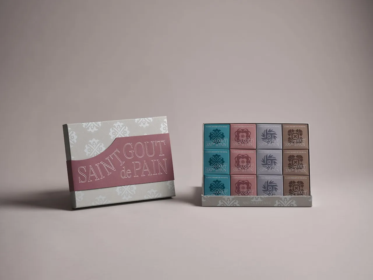 조선시대 왕실의 별식을 만들던 전각인 '생과방'이라는 이름을 불어로 덧씌워 감추었다. 'SAINT GOUT de PAIN' 음운의 형태로 묘사하여, 신성한/맛/빵 의 의미를 갖는다.