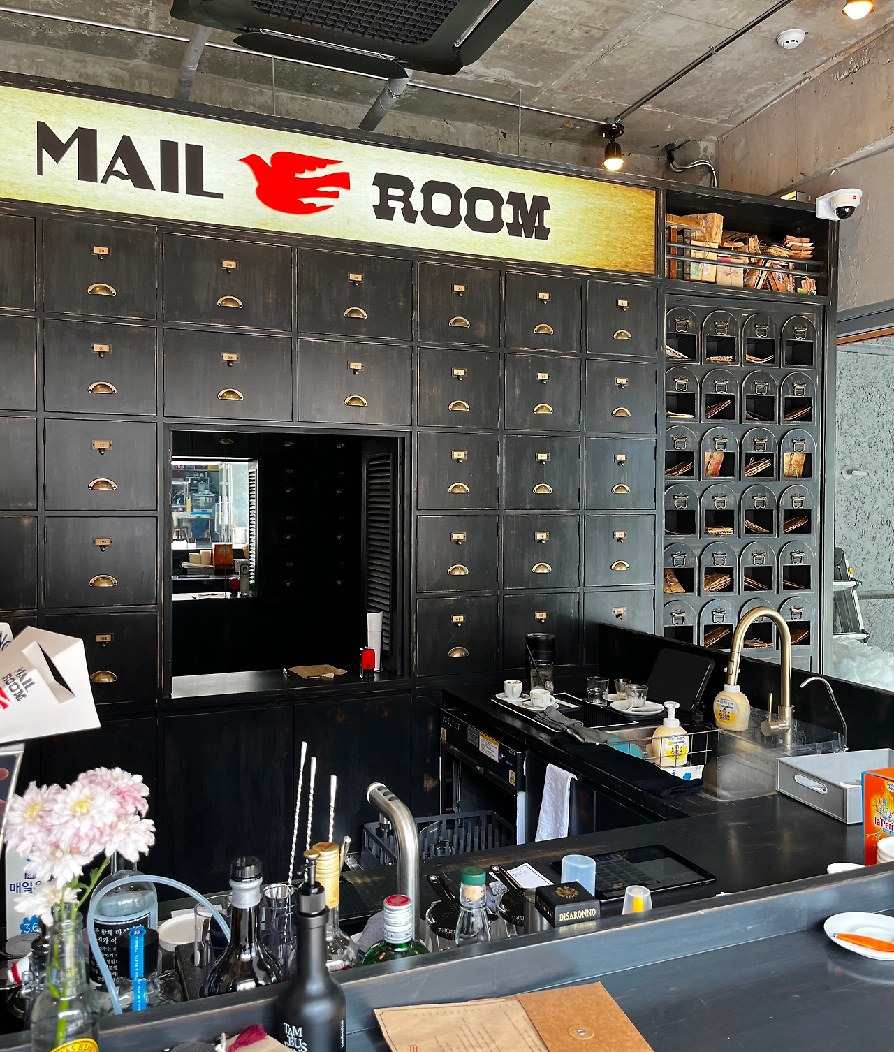 가장 최근 선보인 '메일룸'은 빠르게 흘러가는 서울 중심에서 에스프레소 한잔을 하는 찬라의 시간도 가치 있고 의미 있는 시간으로 보낼수 있도록 기획한 공간이다. 좌석의 다양성과 층마다 각기 다른 콘텐츠를 제공하여 개개인의 시간을 존중하는 공간으로 기획하였다.