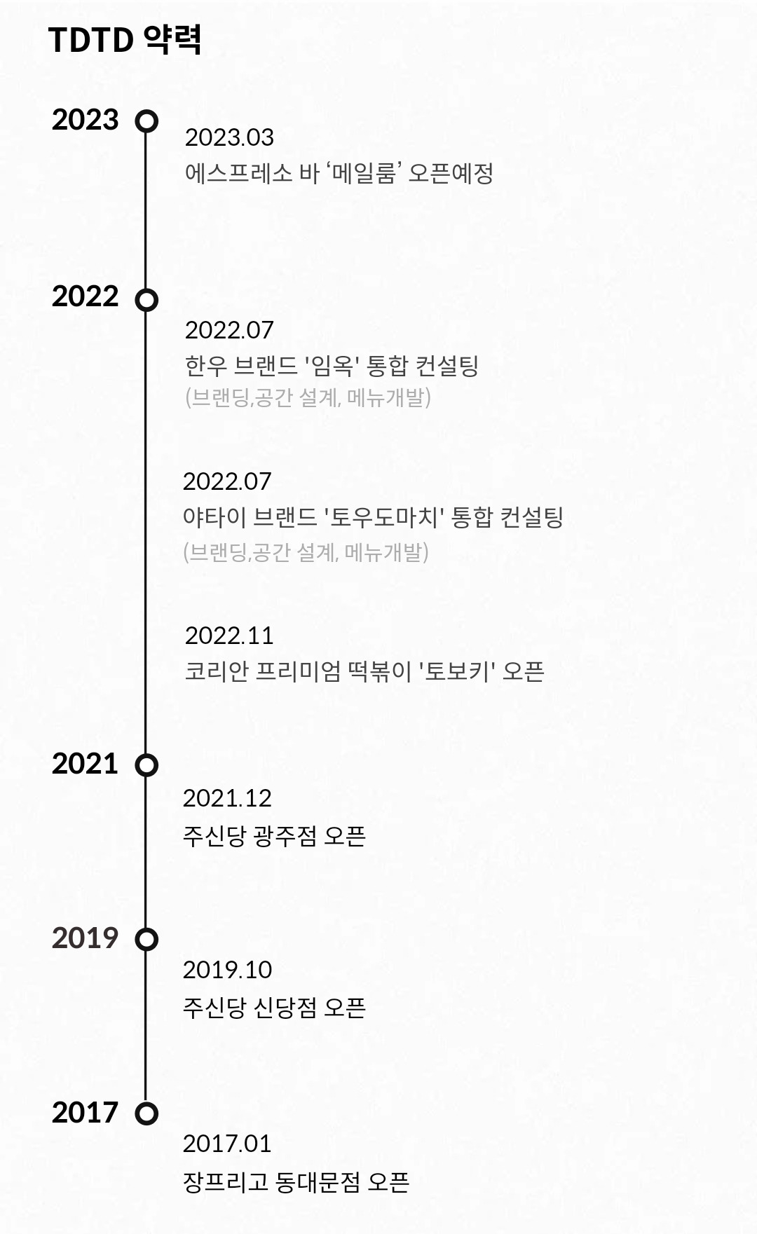 장지호 TDTD(티디티디)대표의 브랜드들은 현대적인 감각과 독특한 스토리텔링을 통해 많은 사람들이 찾는 핫플레이스가 됐고, 이를 통해 신당동은 점점 더 트렌디한 지역으로 거듭나고 있다. 이는 지역사회와 기업이 상생을 이루는 좋은 예시로 평가받고 있다.