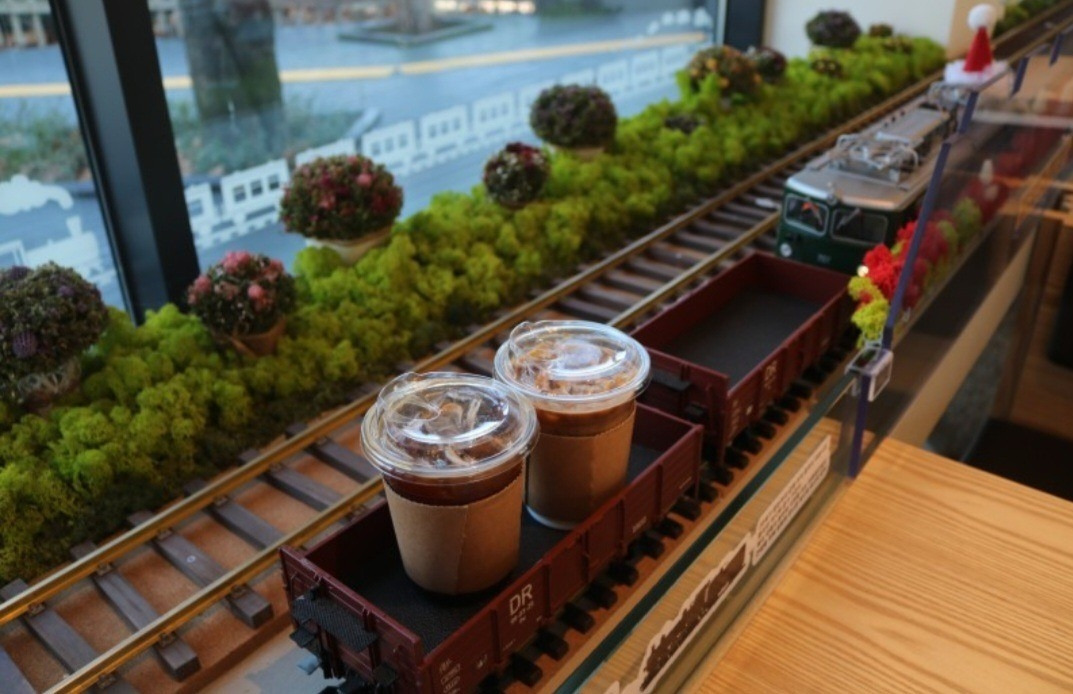 천장 기차, 모형 기차 전시장 등 기차를 테마로 한 카페