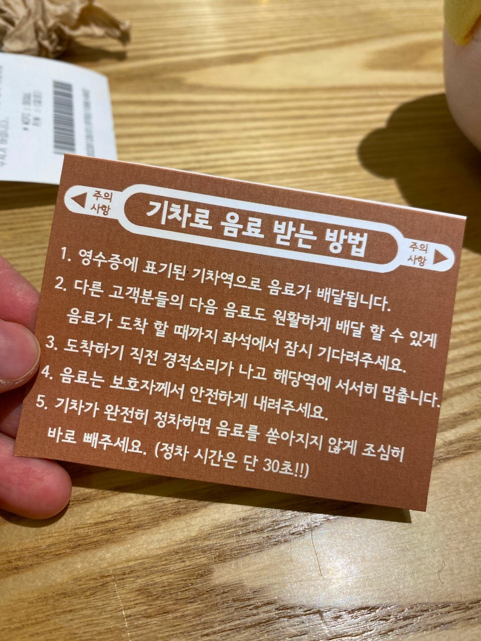 미니기차가 음료를 배달해주는 시스템 운영(1층 한정)