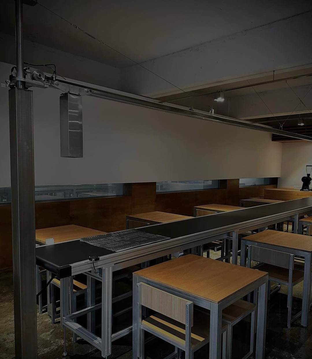 '컨베이어 벨트'라는 임팩트있는 소재로 브랜드의 이념을 풀어낸 점이 가오픈 기간부터 많은 이들의 관심을 이끌었다. 힙한 무드의 마포구 내에서도 '서교동'이라는 동네에 자리잡은 '콤파일'은 메탈릭하면서도 따뜻한 우드 인테리어와 가구에 '느림의 미학'을 믹스했다. 브랜드가 지향하는 바를 매개체를 통해 한 번 더 번역하여 반영한 점에서 운영자의 고심이 엿보인다.