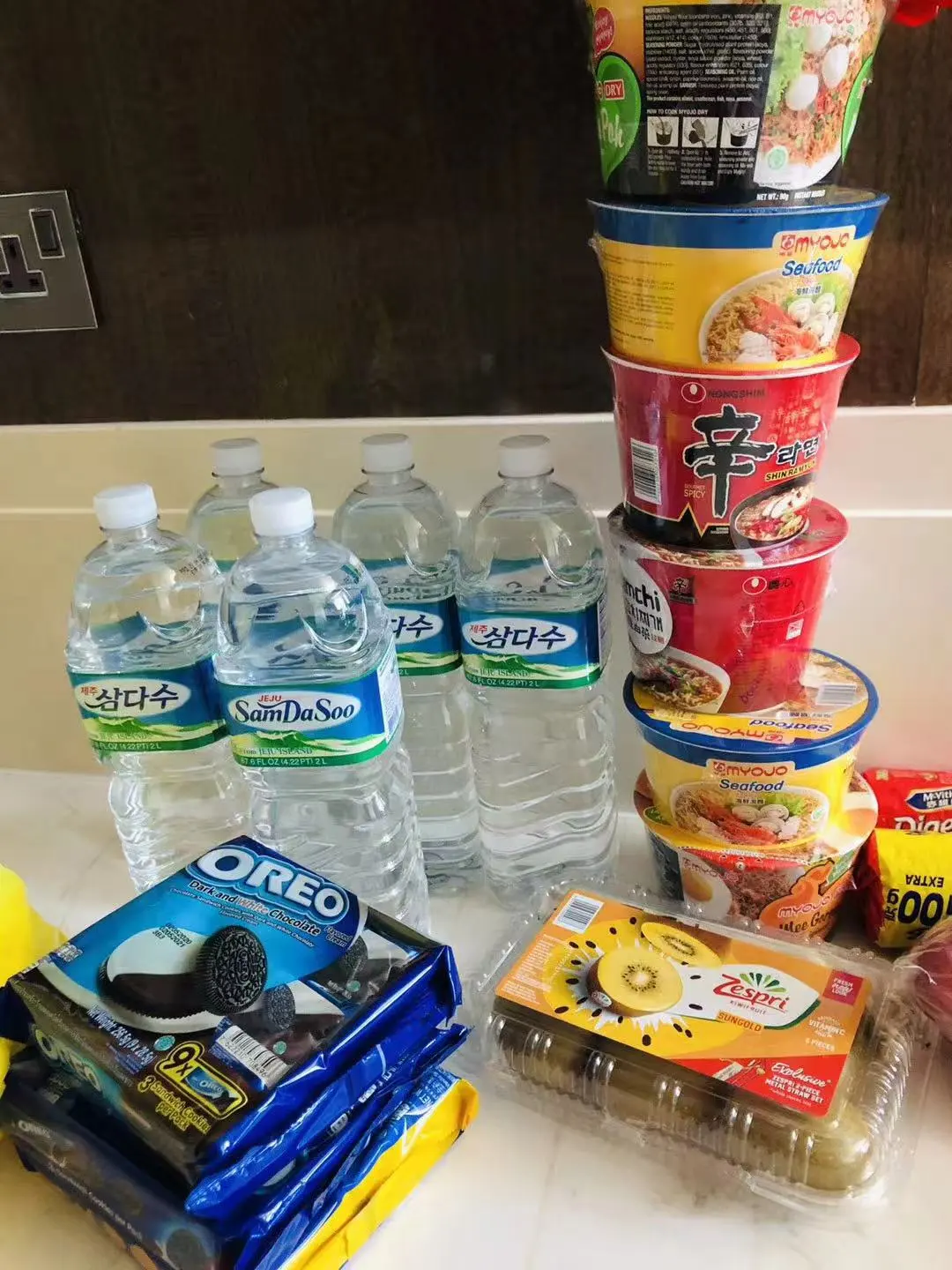 남편은 삼다수, 신라면, 과자를 카운터에 맡겨 보내주곤 했다. 격리 7일째쯤, 나는 진짜 라면이 먹고 싶었다. 무심히 흘려 말했는데 남편은 진지하게 받아들였던 모양이다.