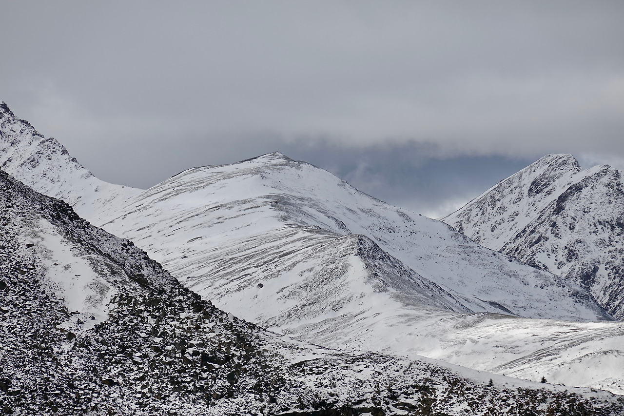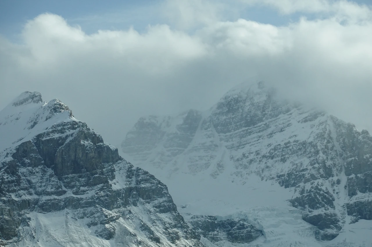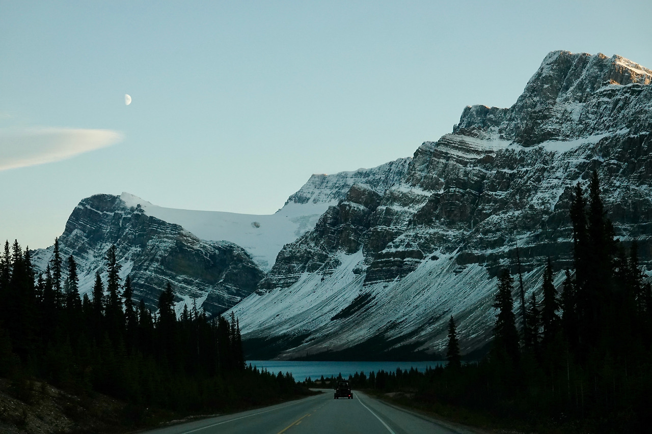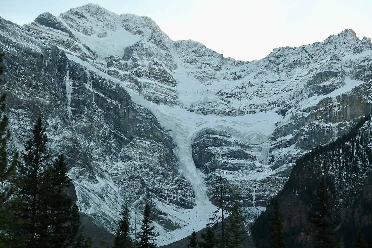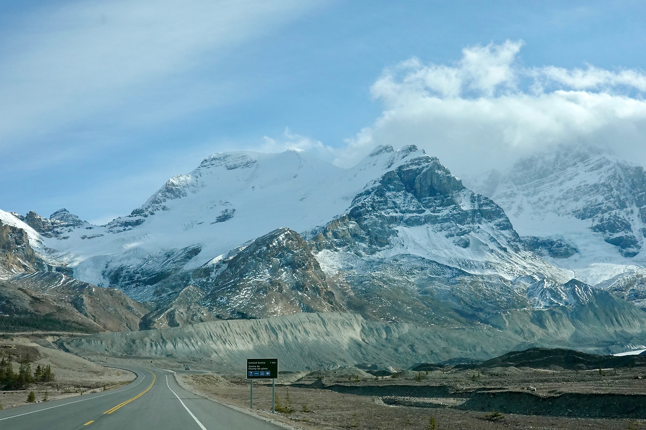 저 높이 하얀 눈과 얼음, 감탄을 하며 차에서 내렸다.